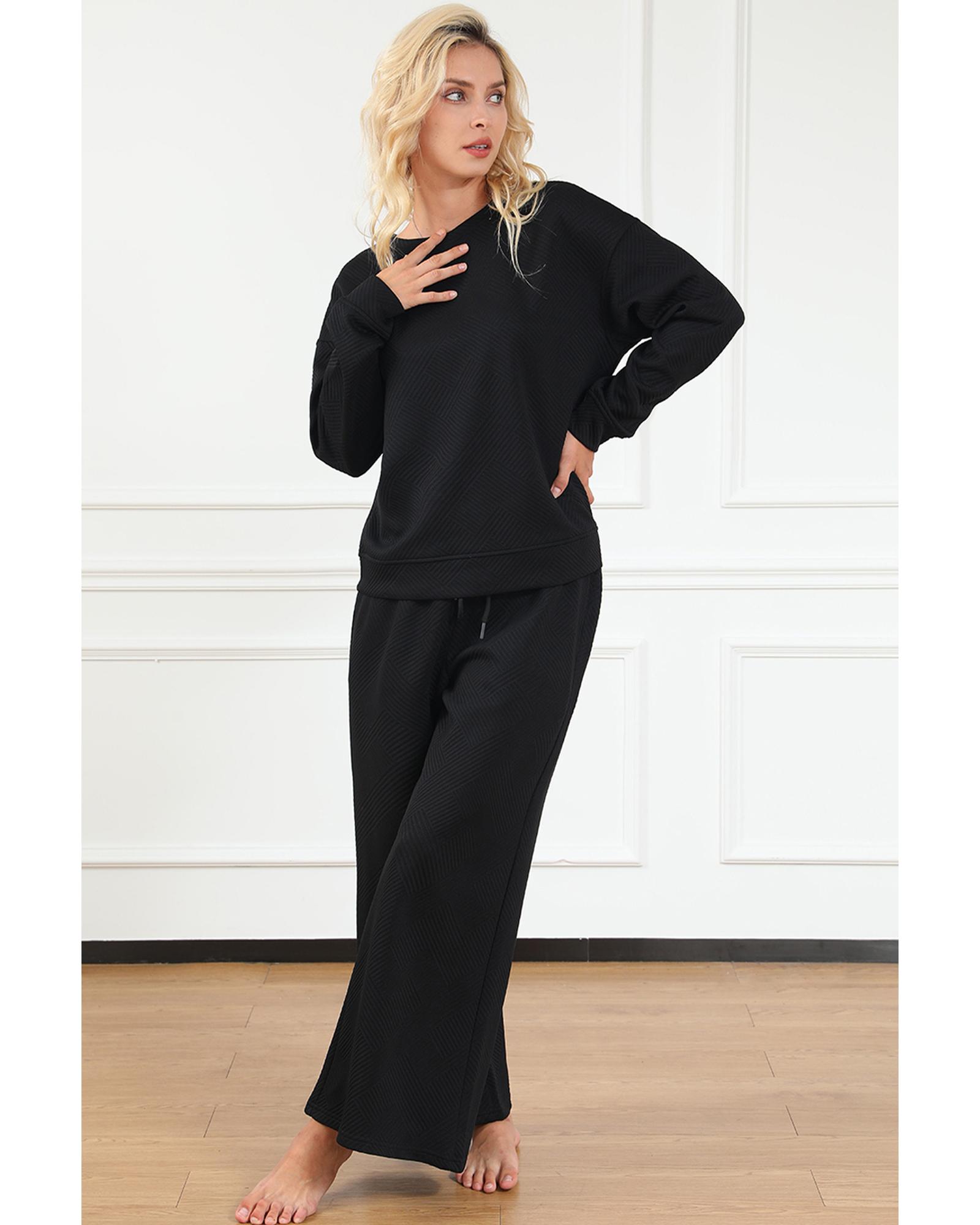 Black Ultra Loose Textured 2pcs Slouchy Outfit – M
