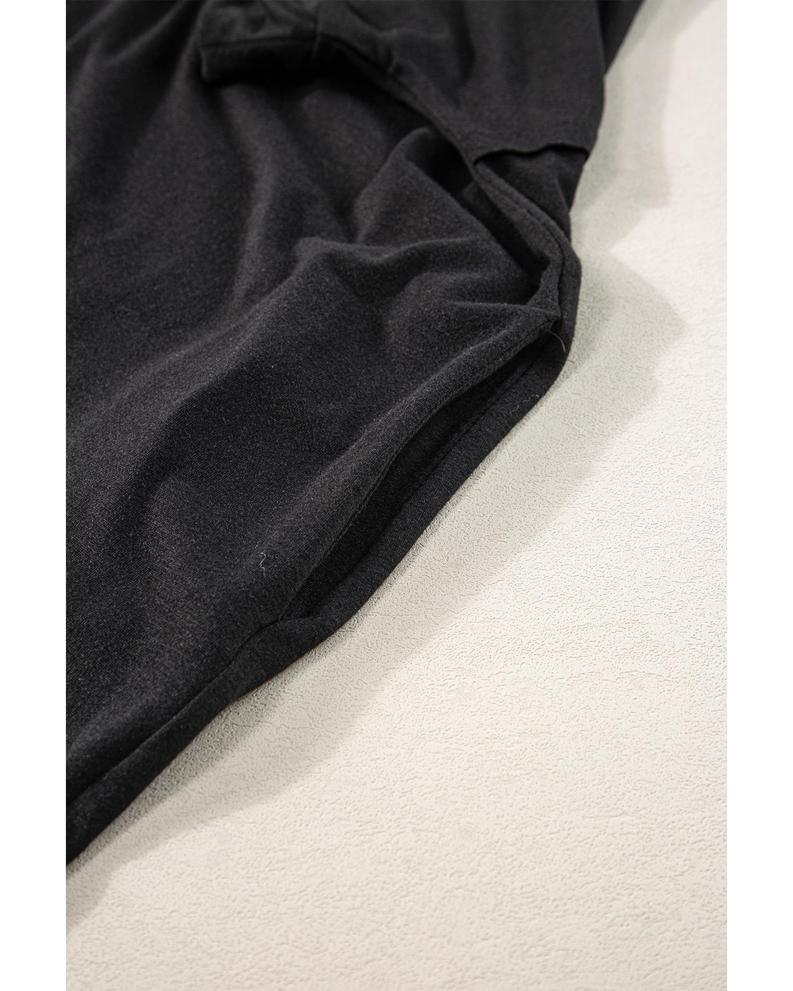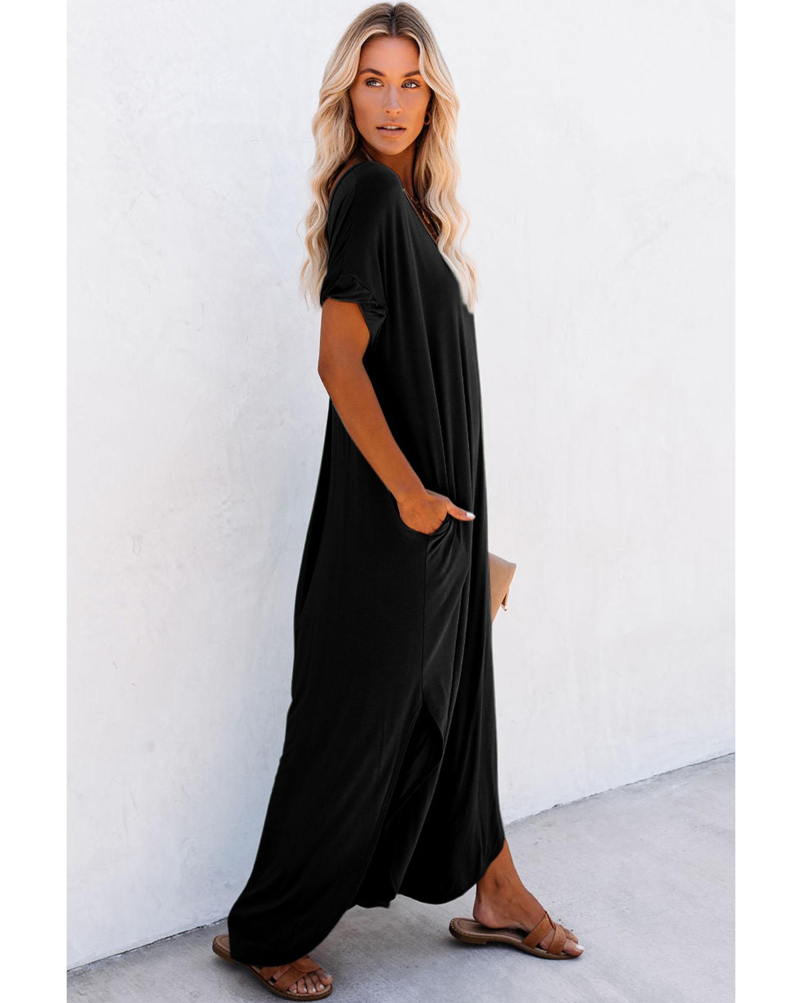 Black V Neck Hidden Pocket Splits Maxi T-shirt Dress – M