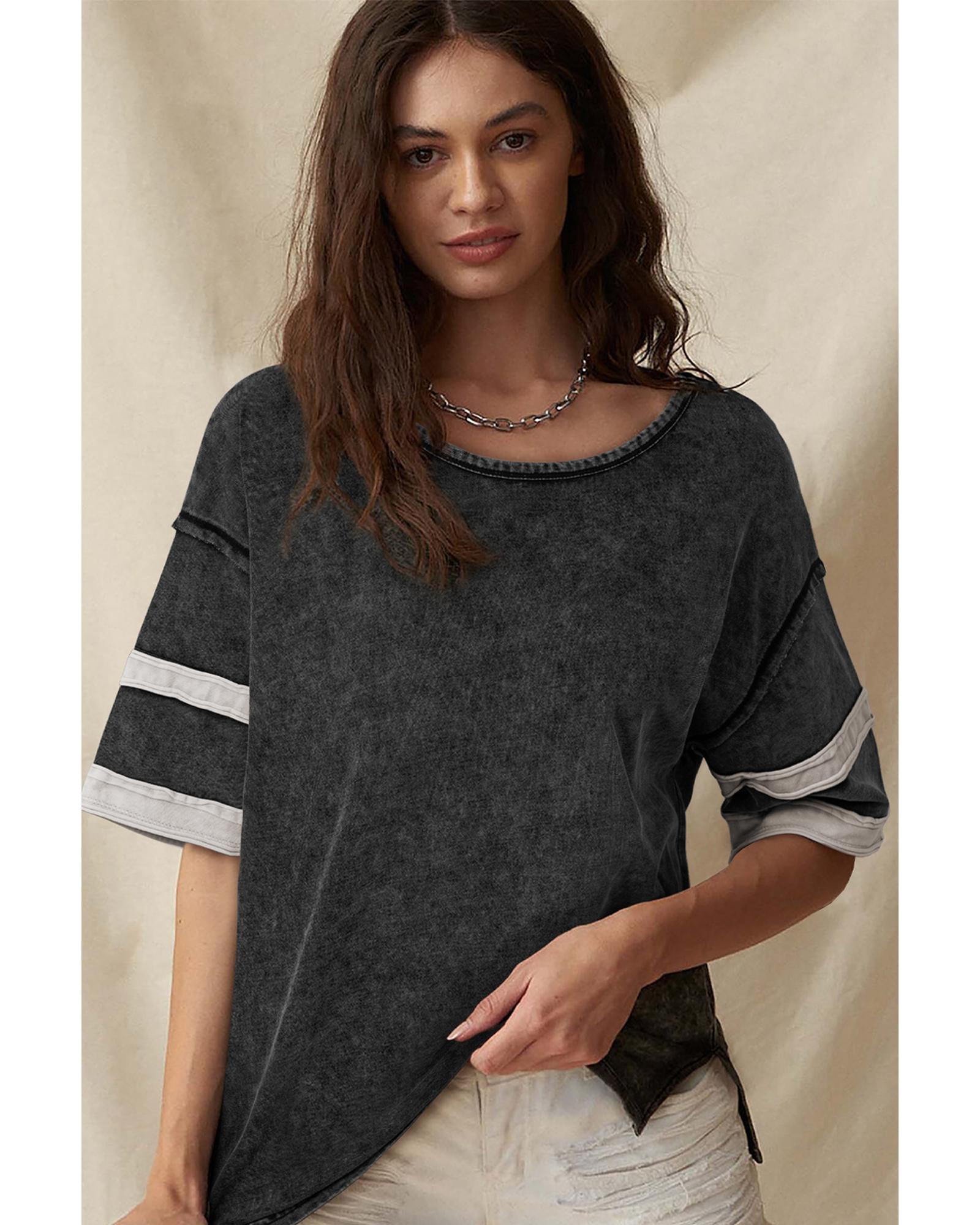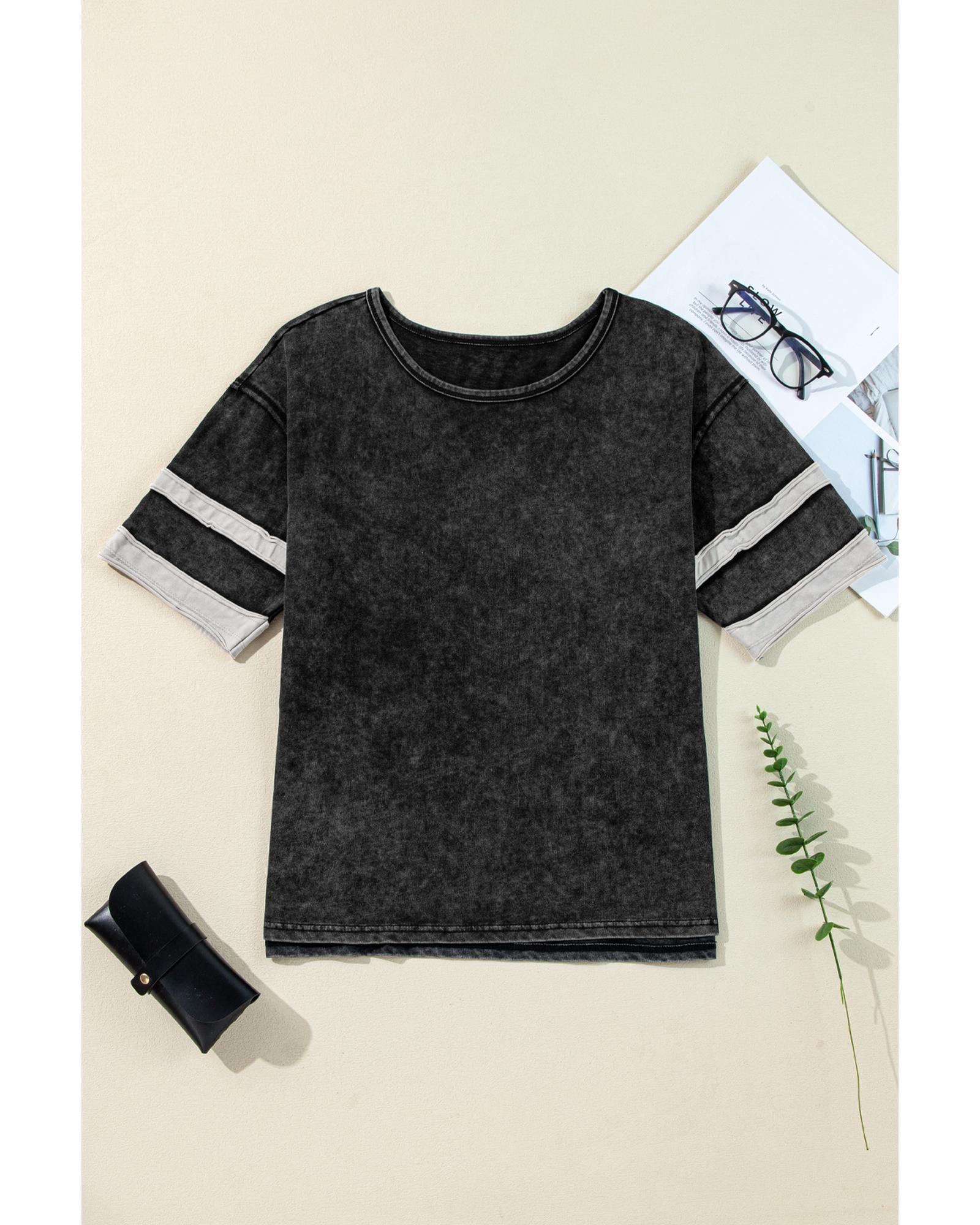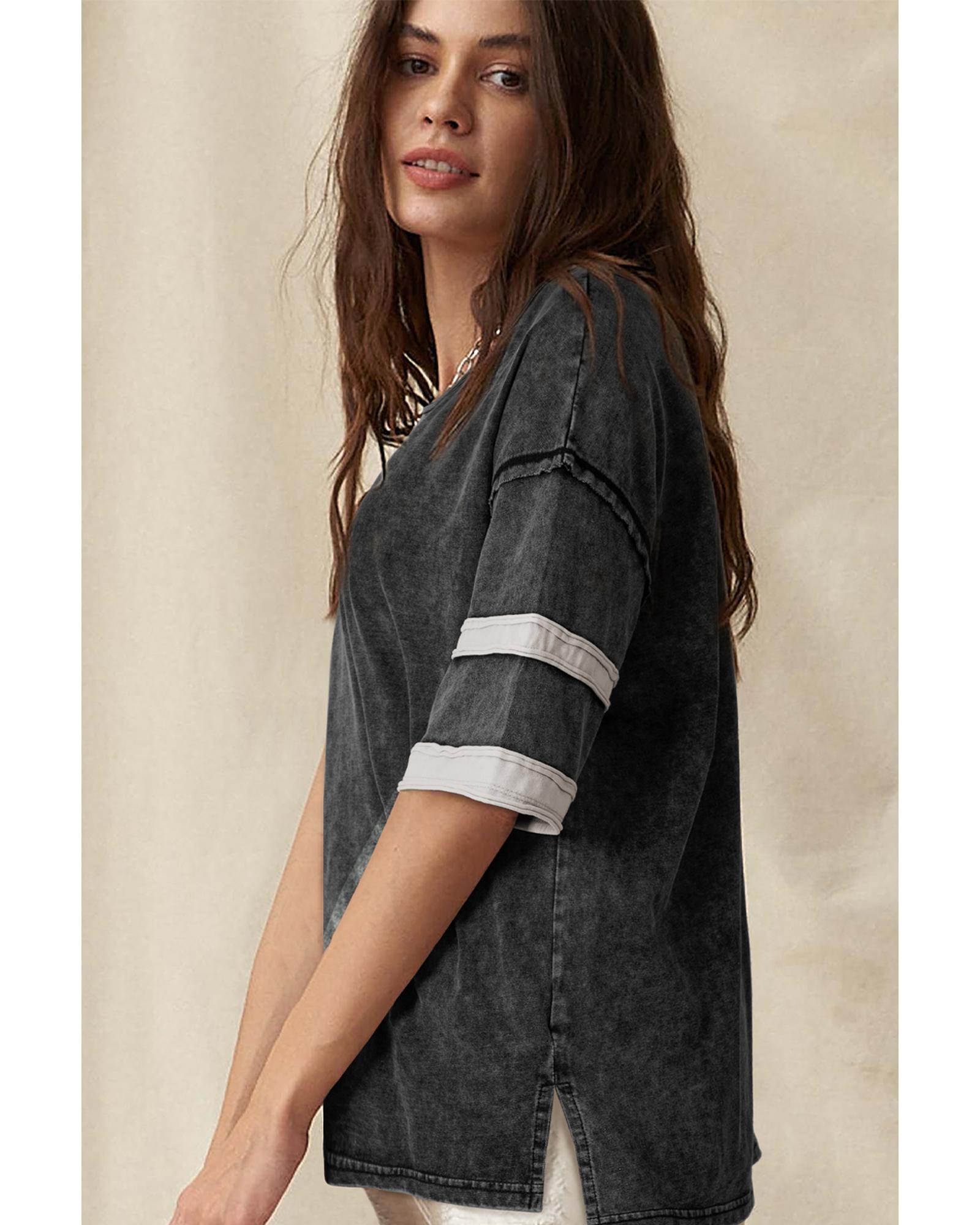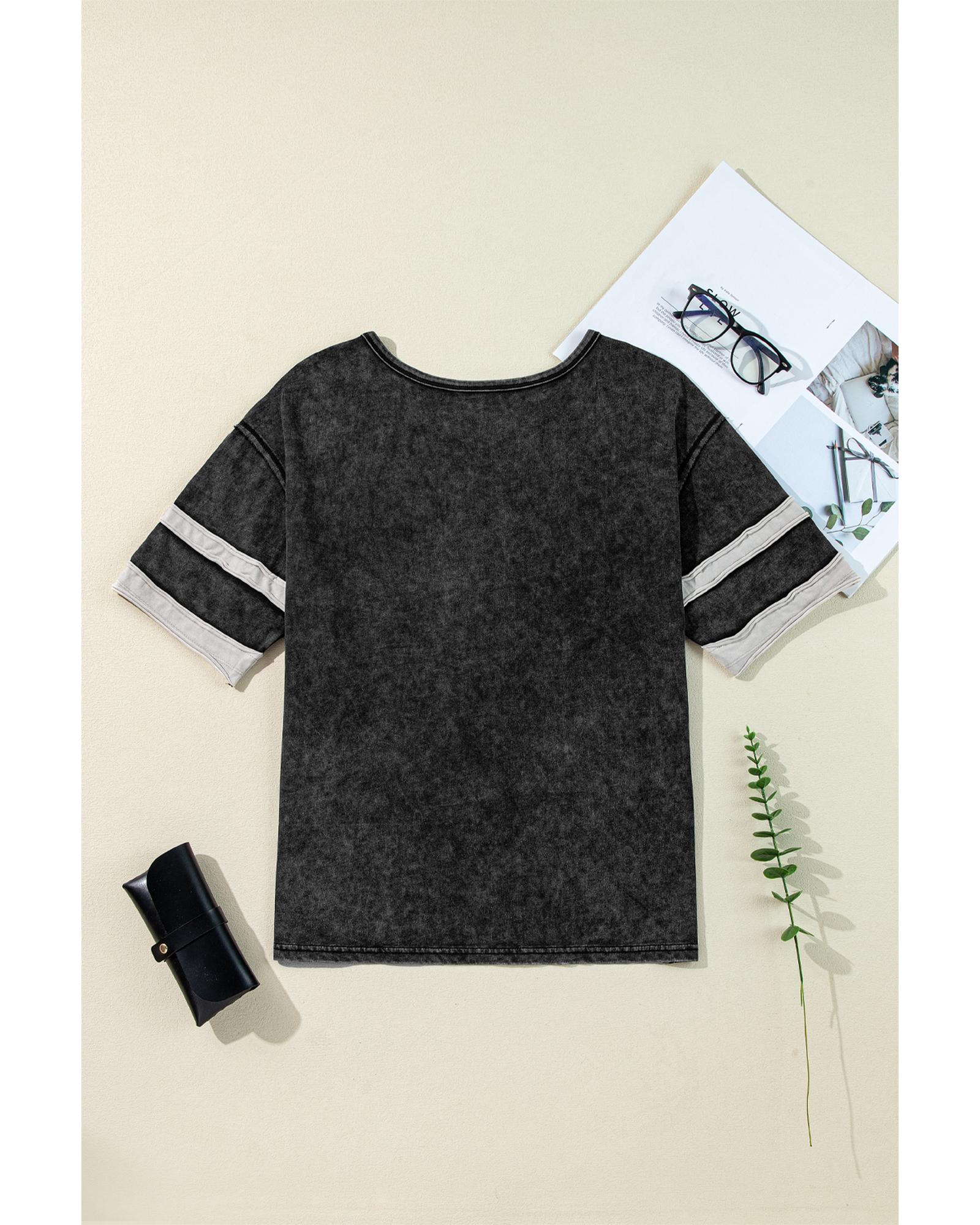 - Black Varsity Stripe Half Sleeve Vintage Tee