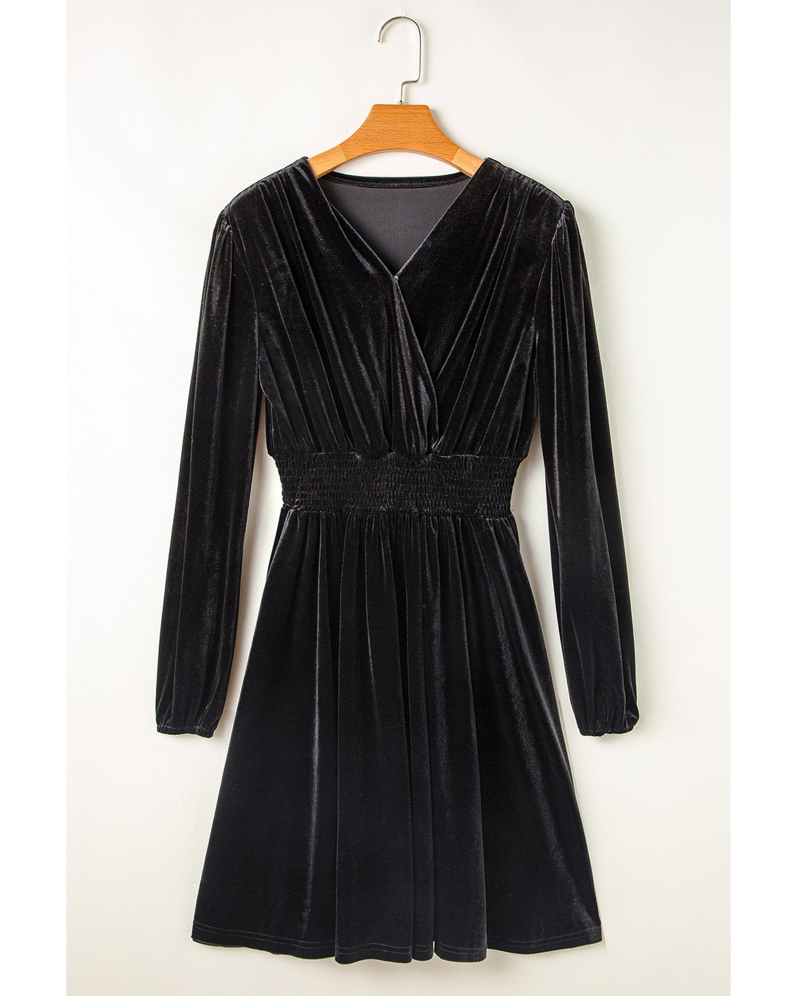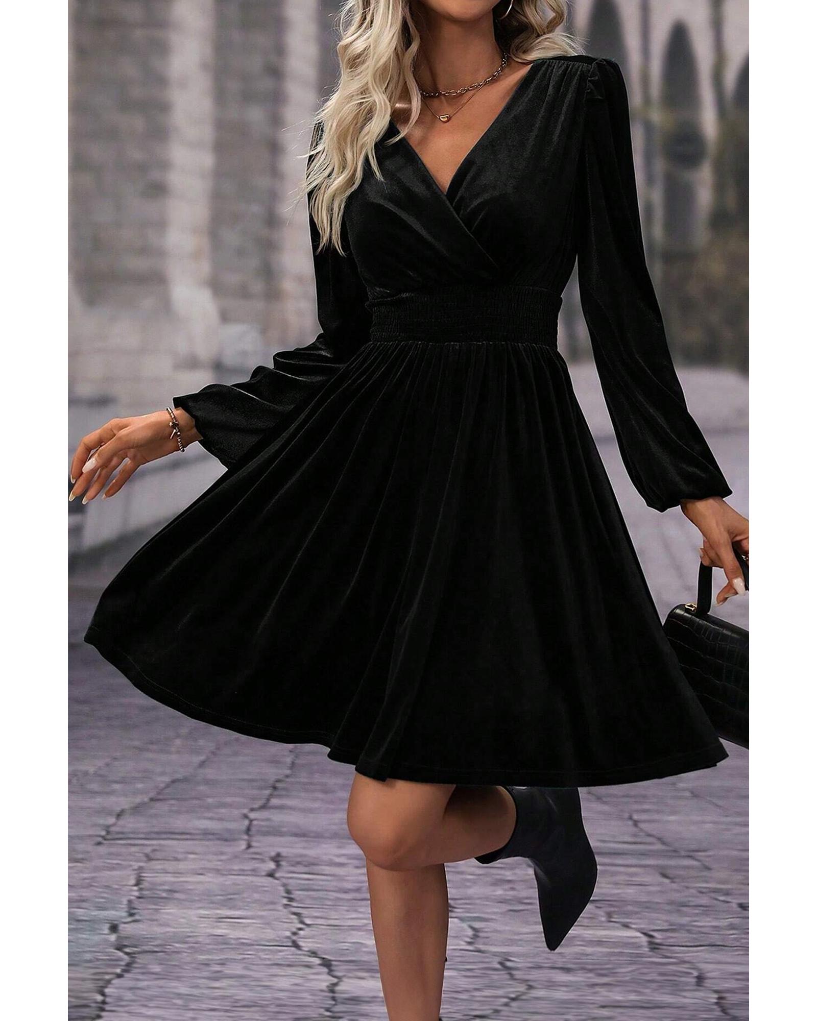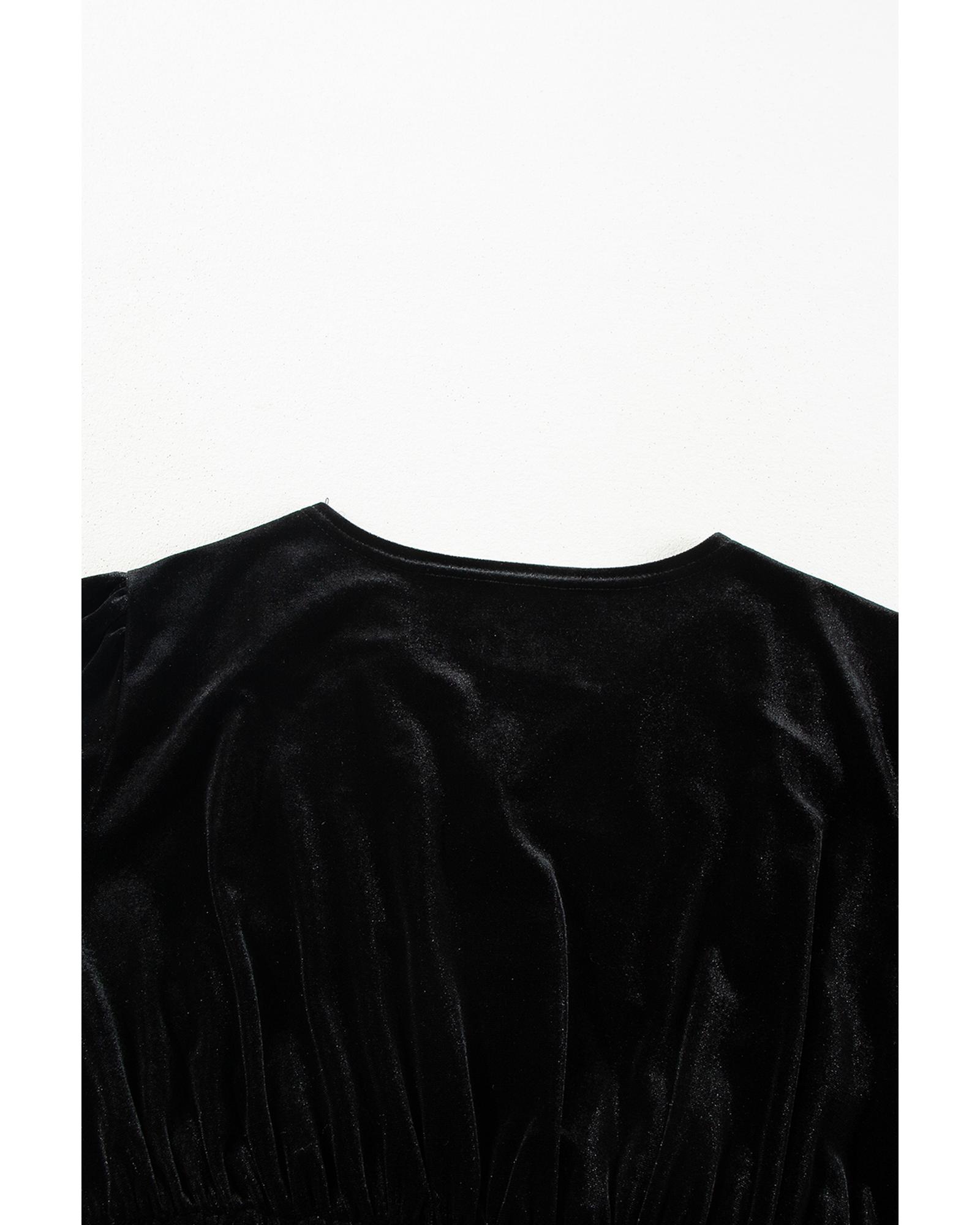 Black Velvet Long Sleeve Surplice High Waist Mini Dress – XL