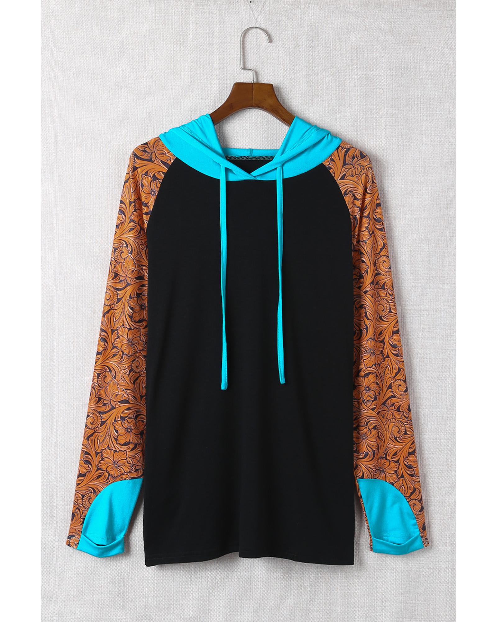 Black Western Print Color Block Plus Size Hoodie – 1X