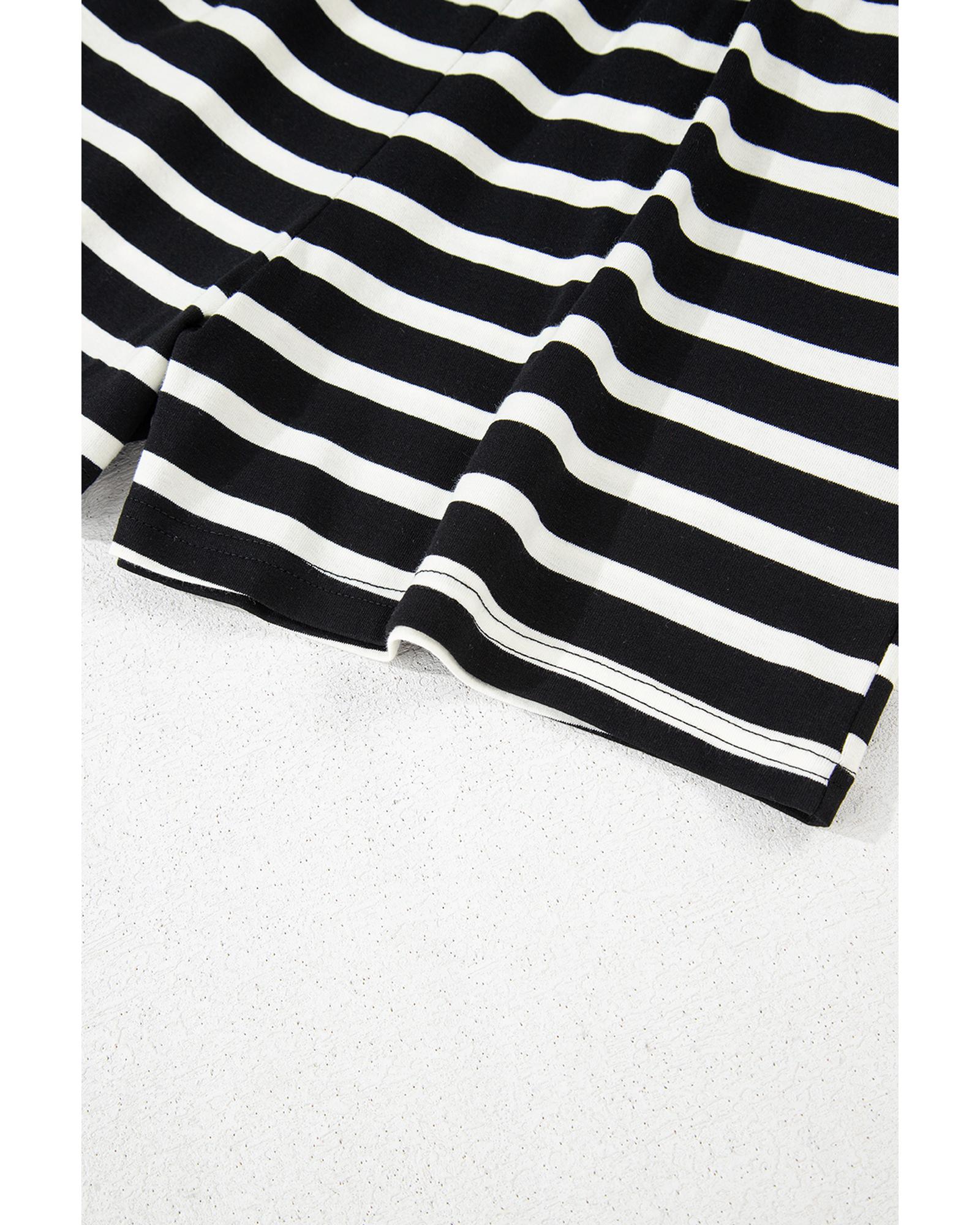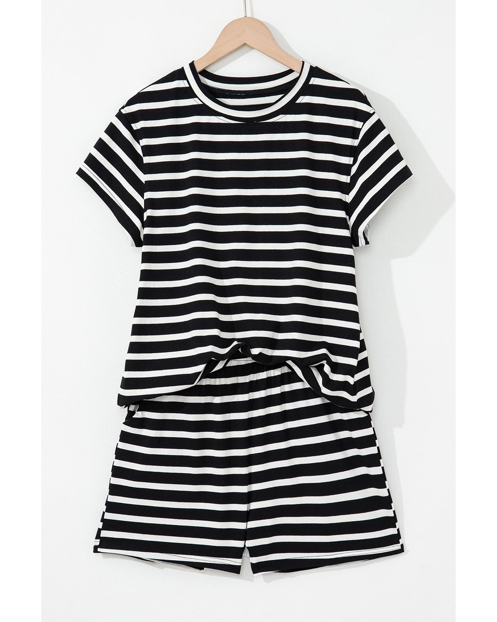 Black White Striped Short Sleeve Top and Shorts Set - S
