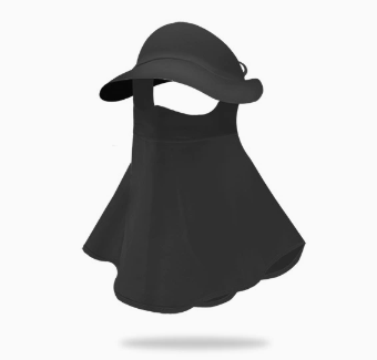 Black Women’s UV Protection Sun Hat with Detachable Neck Flap and Wide Brim