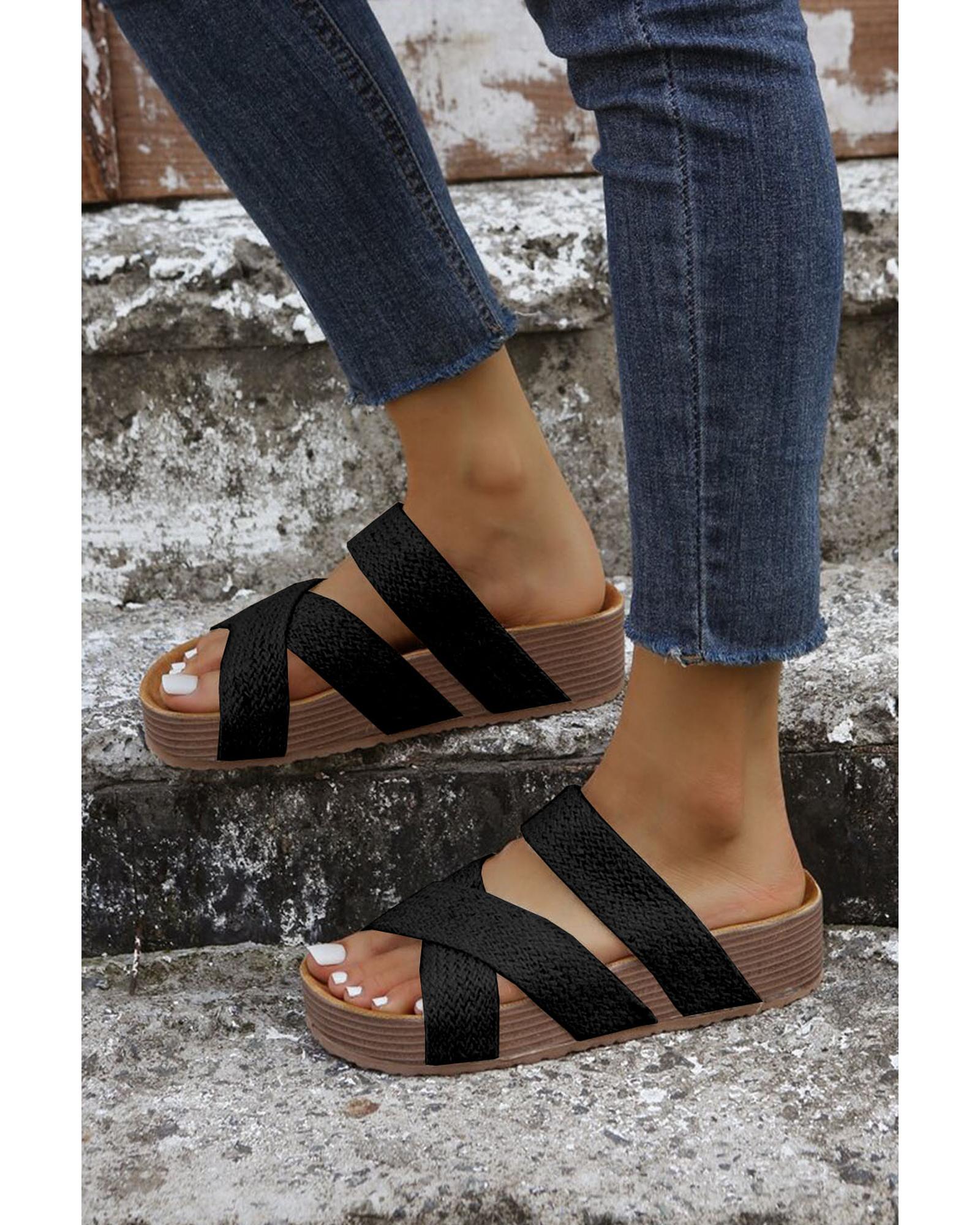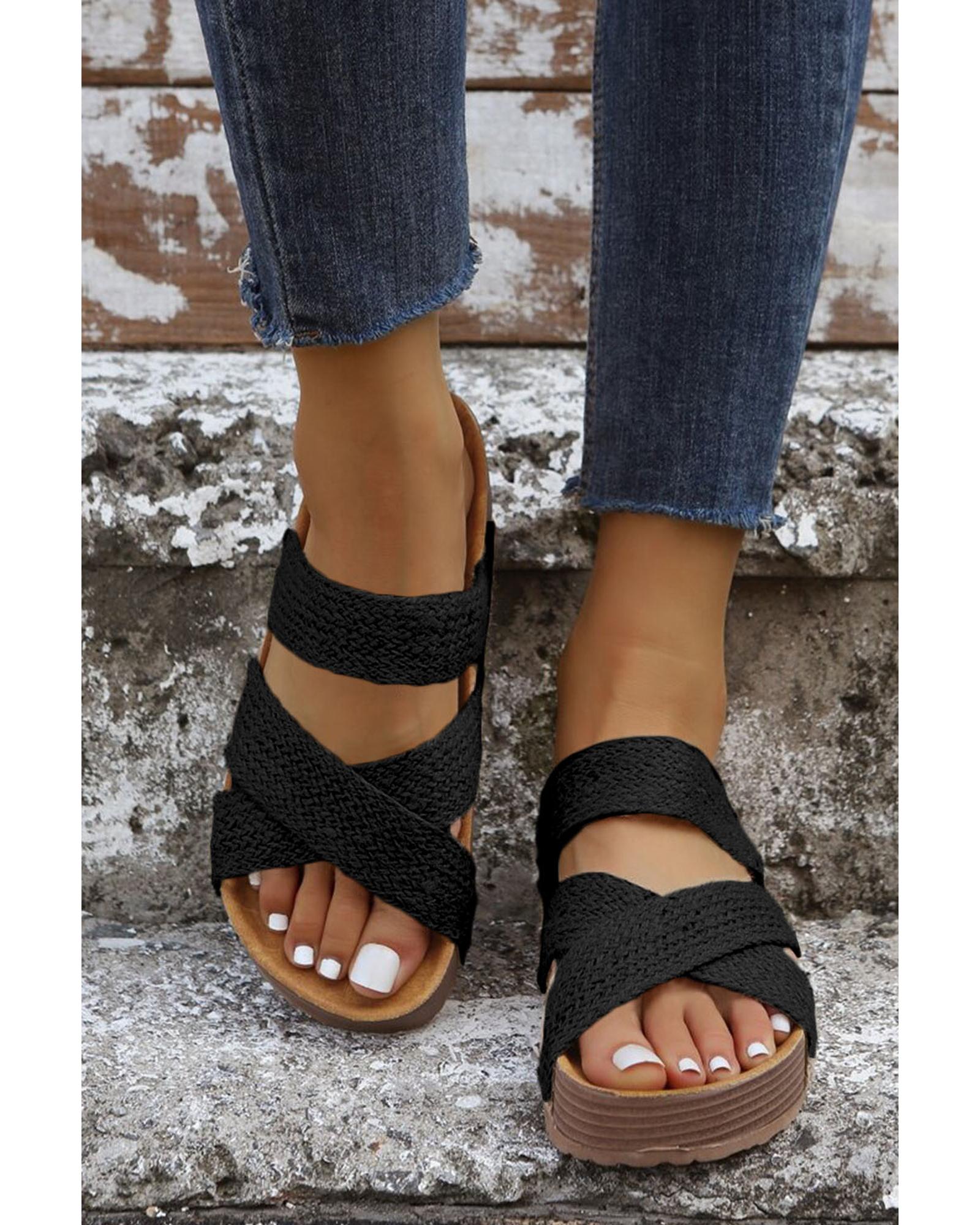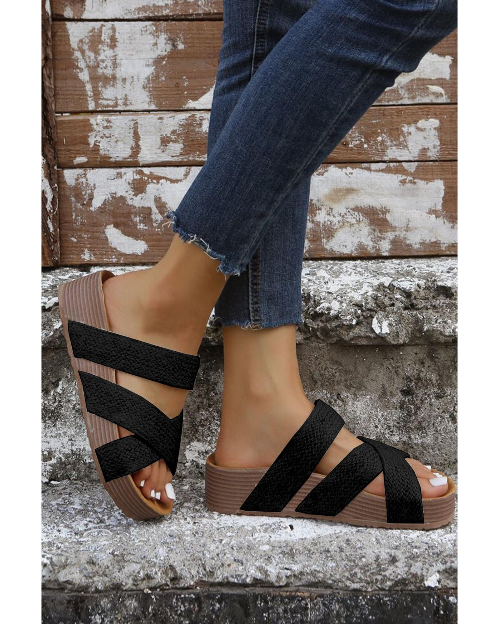 Black Woven Cross Criss Hollowed Slip-On Slippers – 38 EU