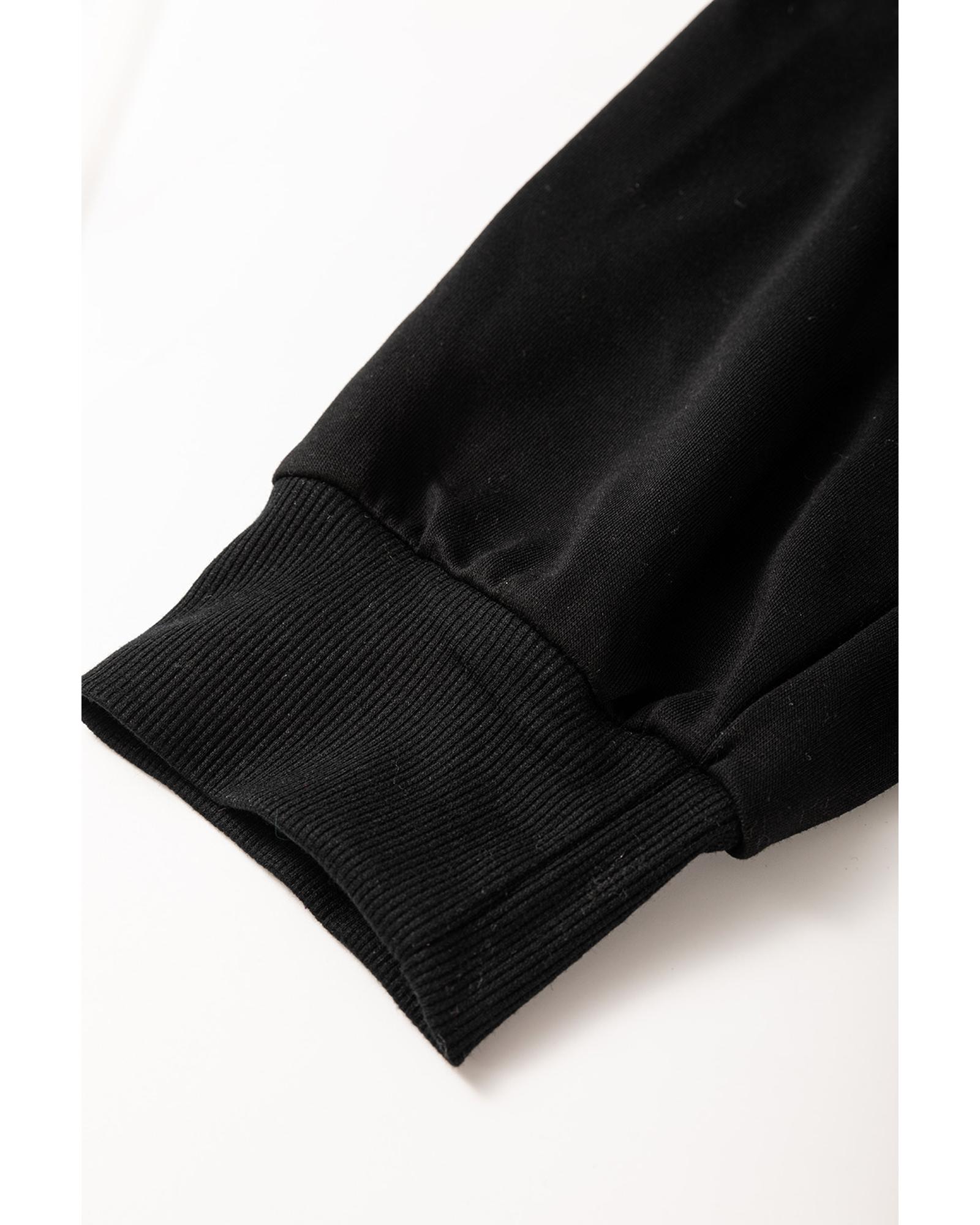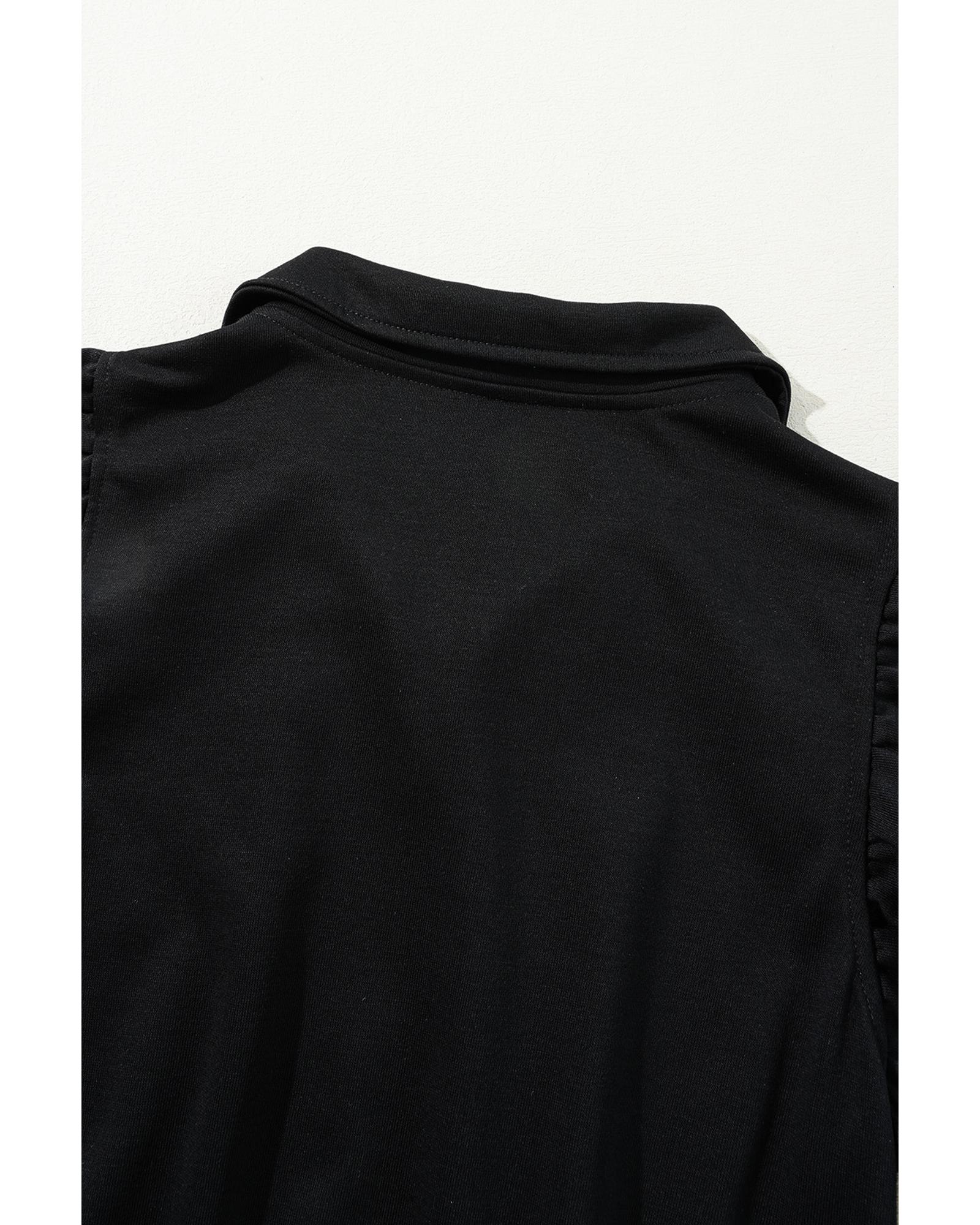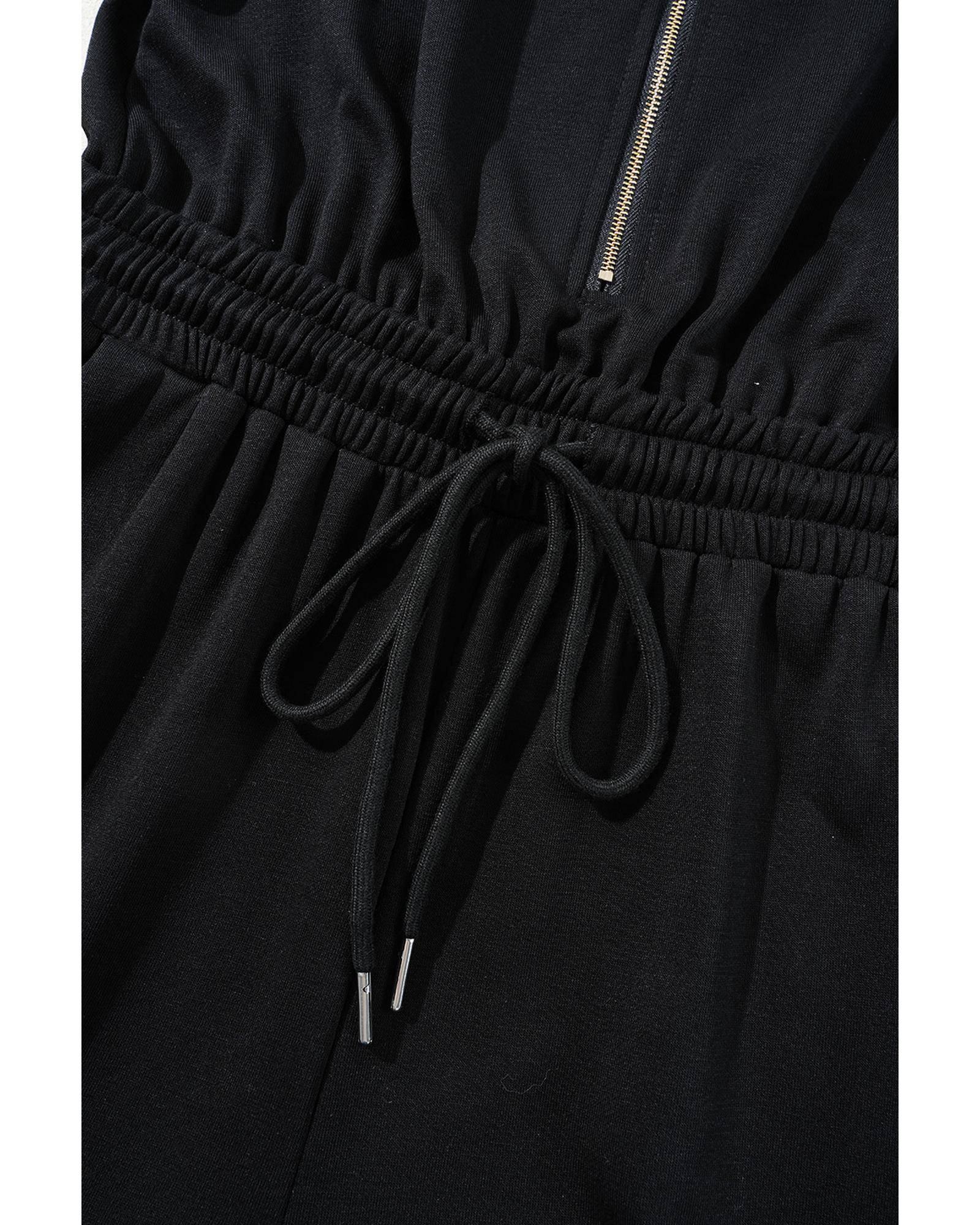 Black Zipper Flutter Sleeve Drawstring High Waist Jumpsuit – L