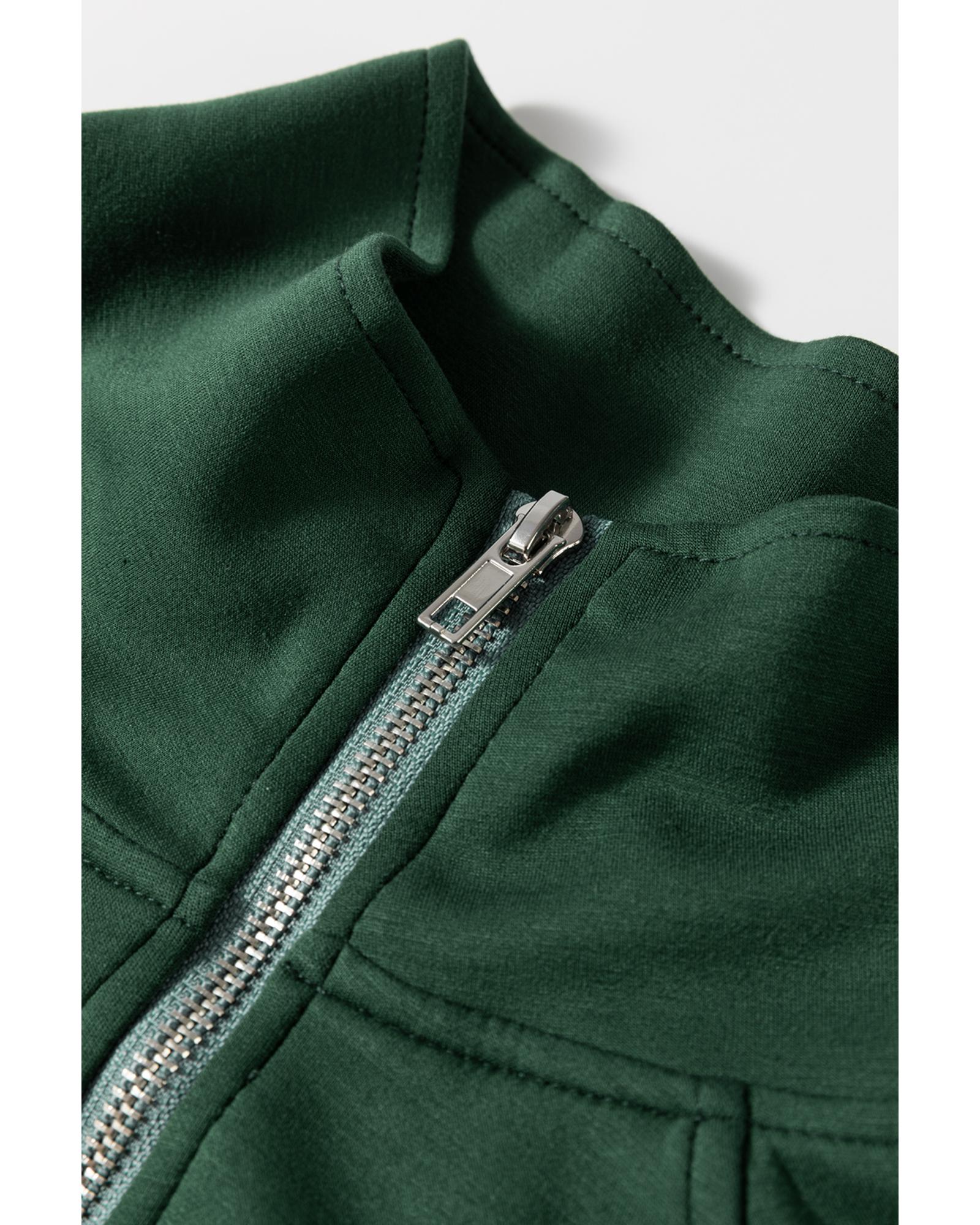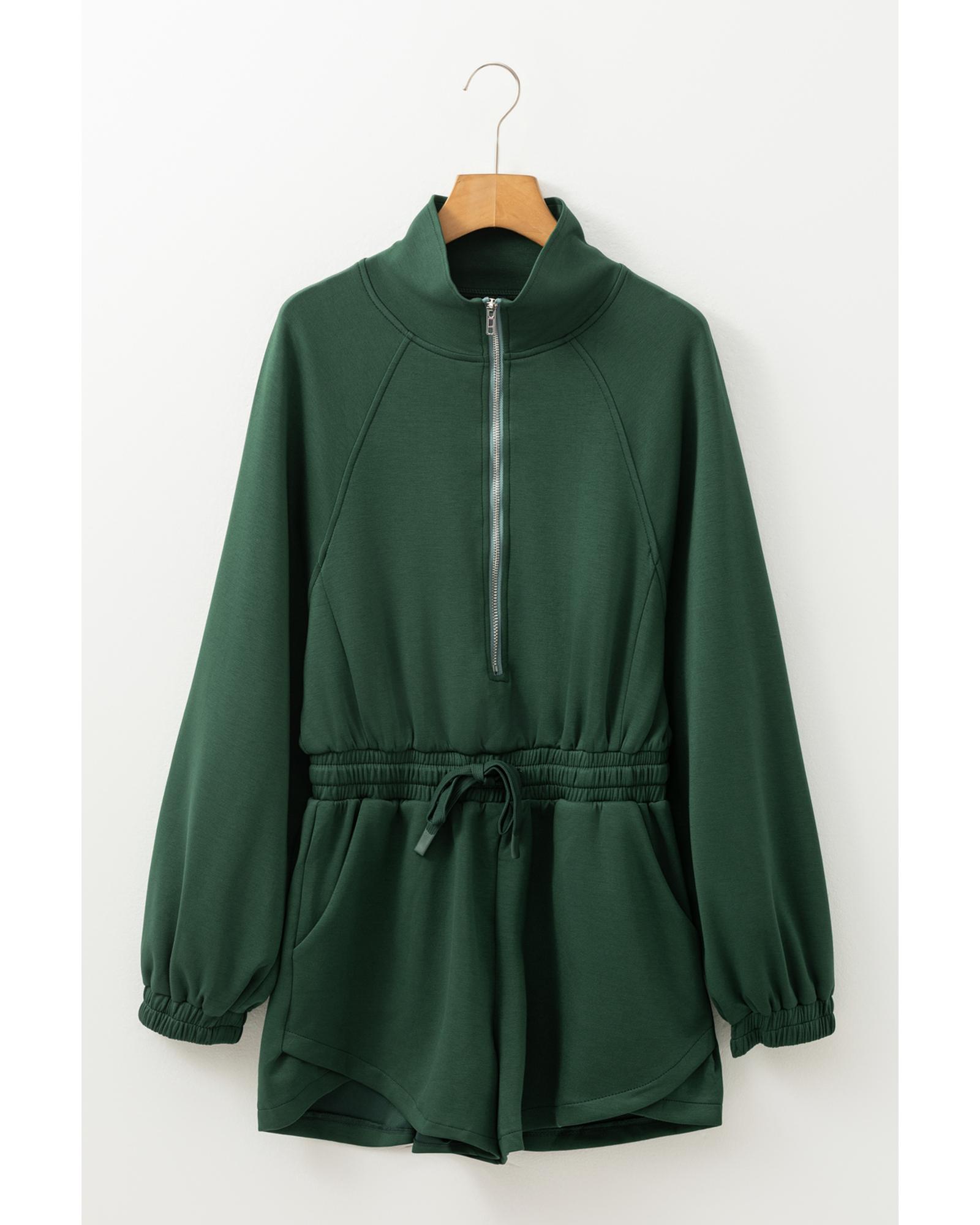 Blackish Green Collared Half Zip French Terry Knit Drawstring Casual Romper – M