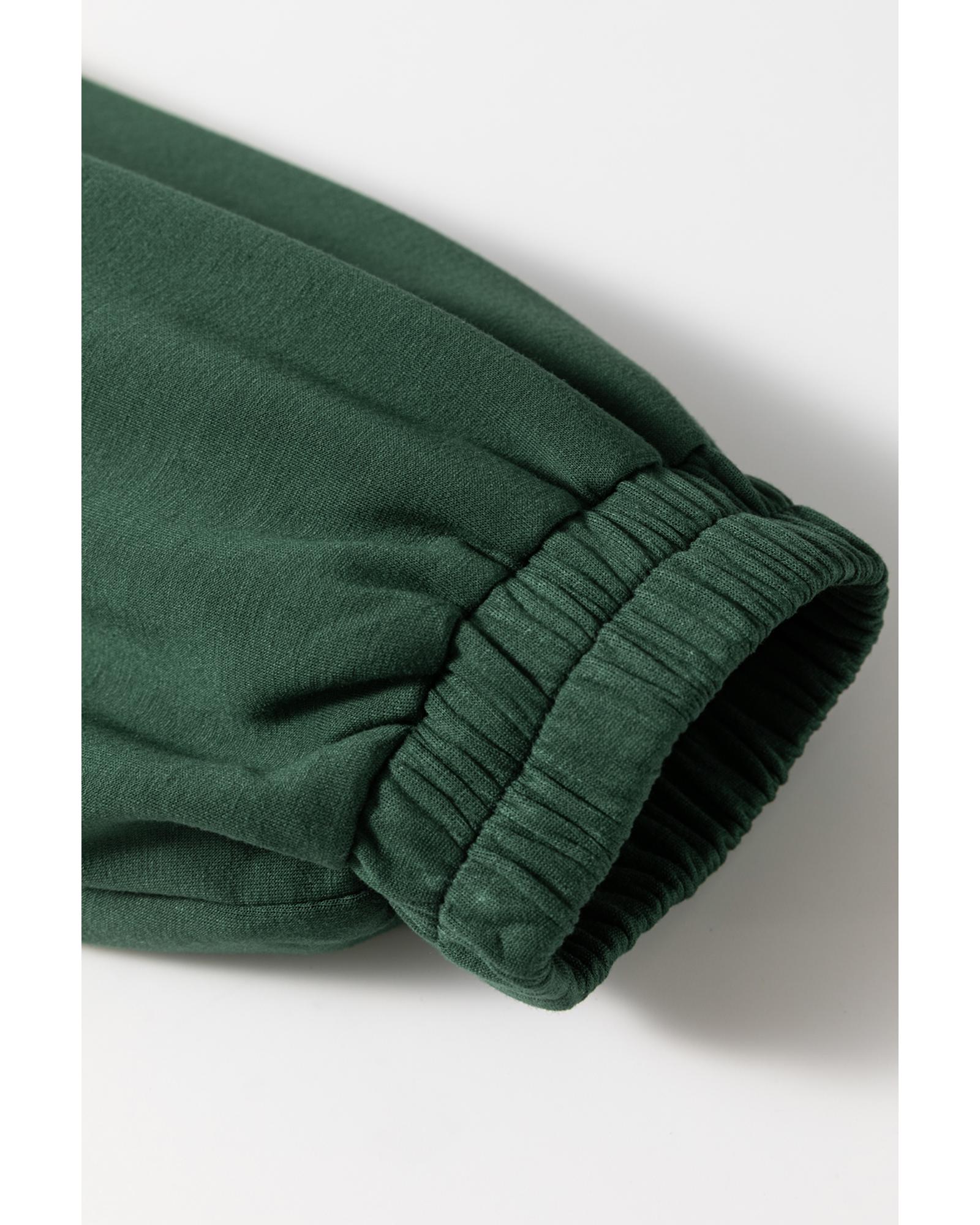 Blackish Green Collared Half Zip French Terry Knit Drawstring Casual Romper – S