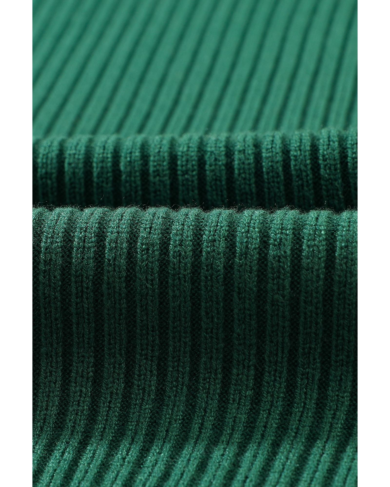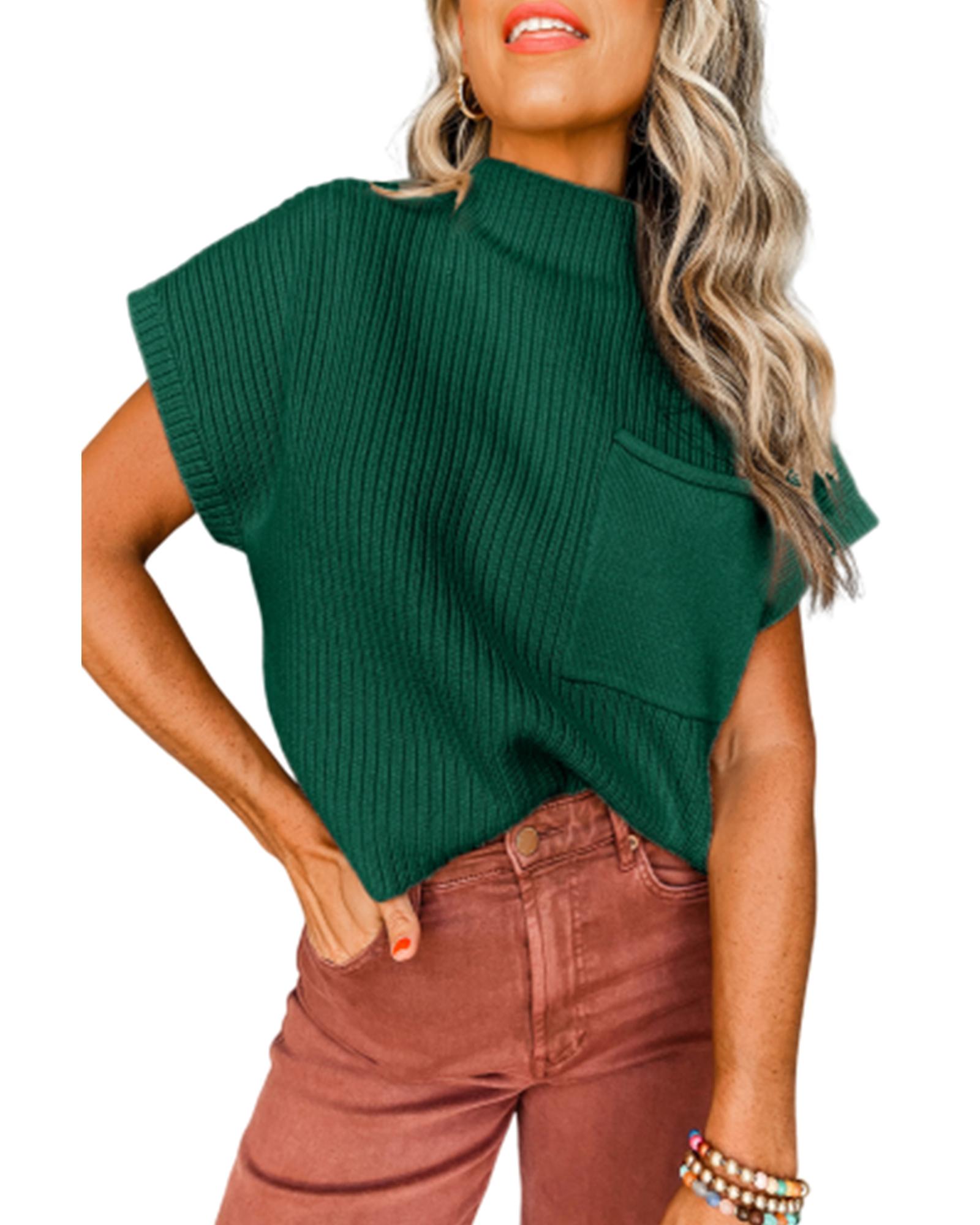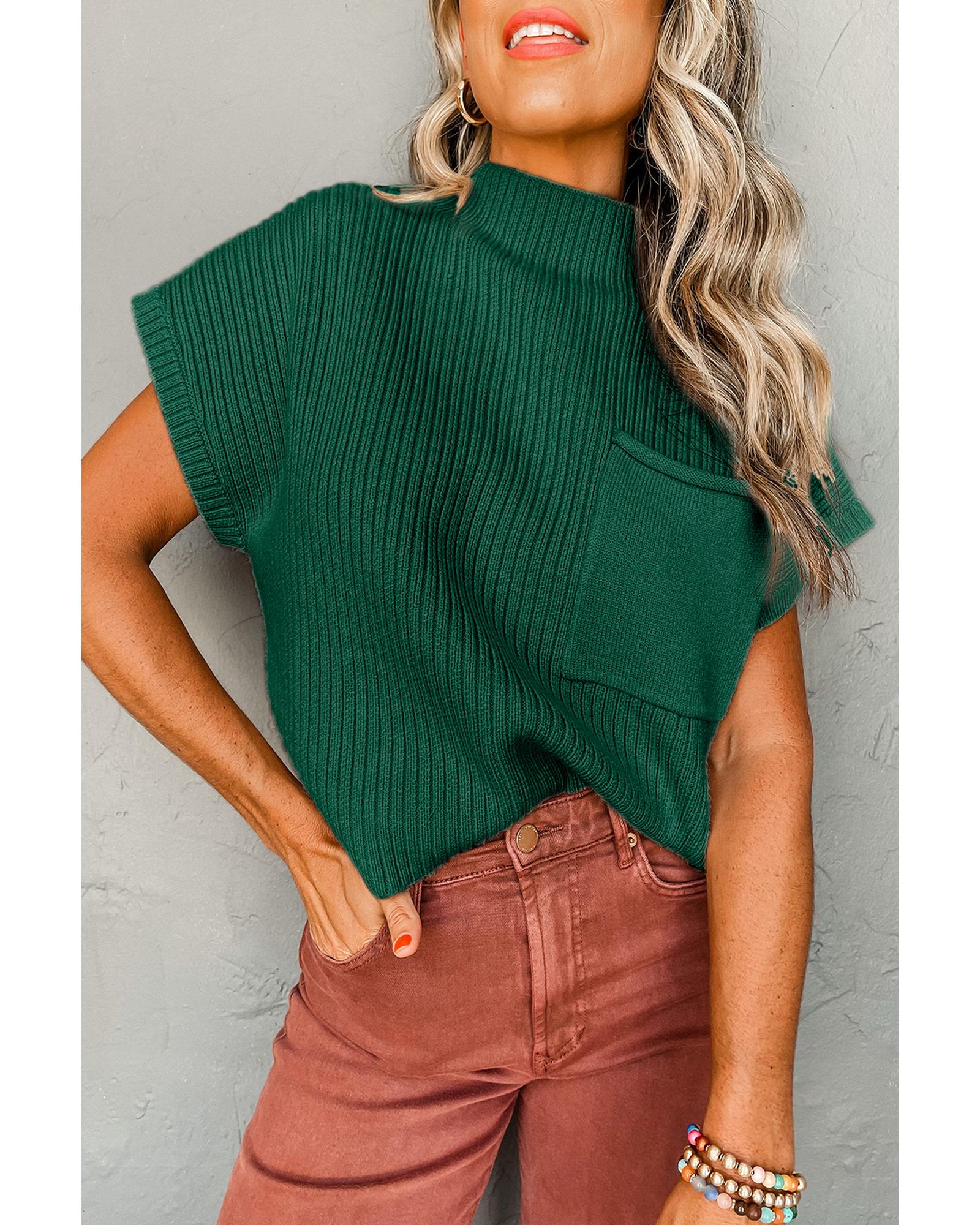 Blackish Green Patch Pocket Ribbed Knit Short Sleeve Sweater – XL