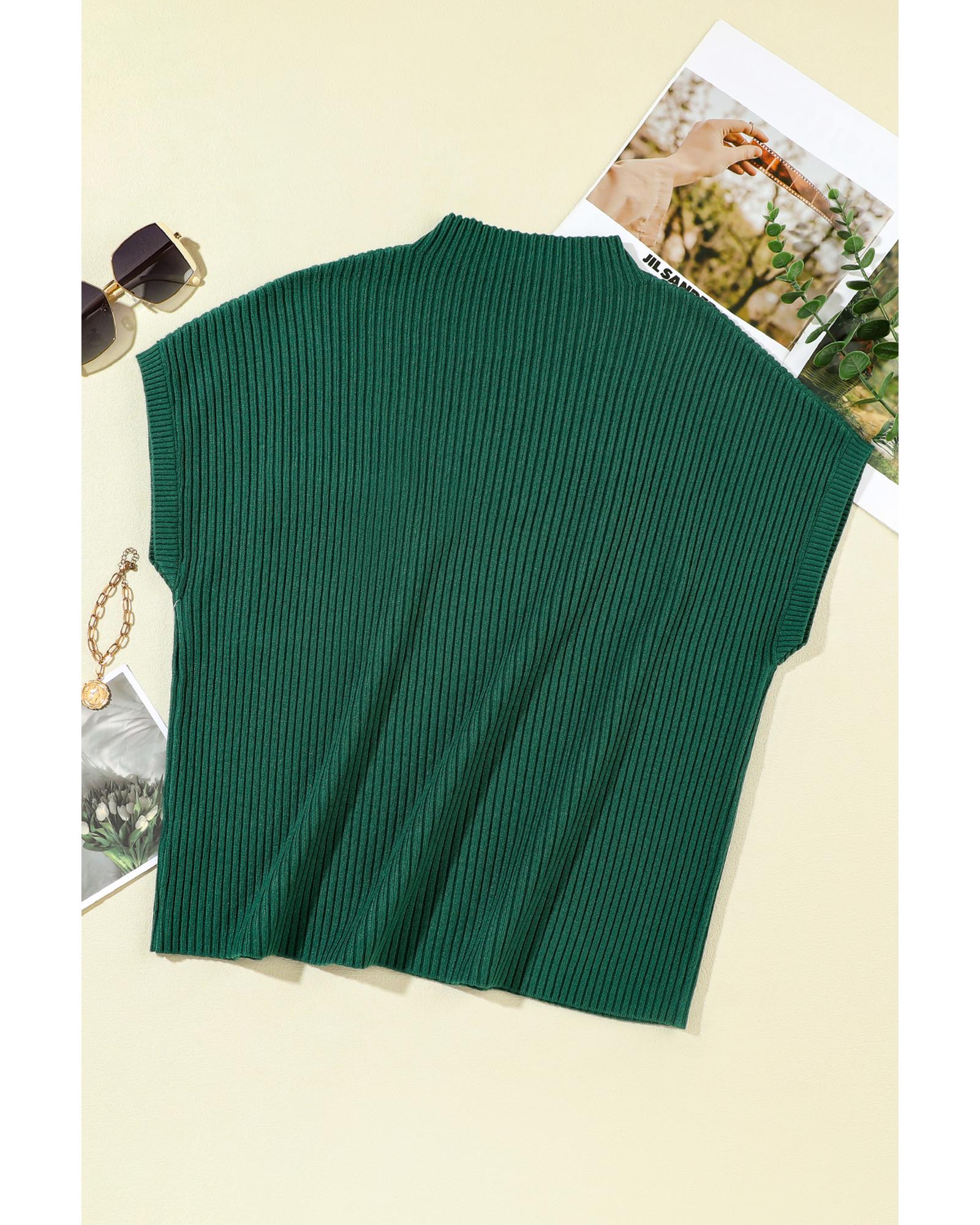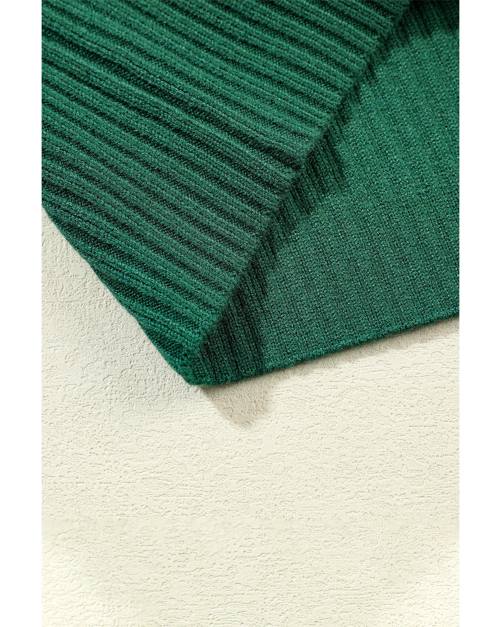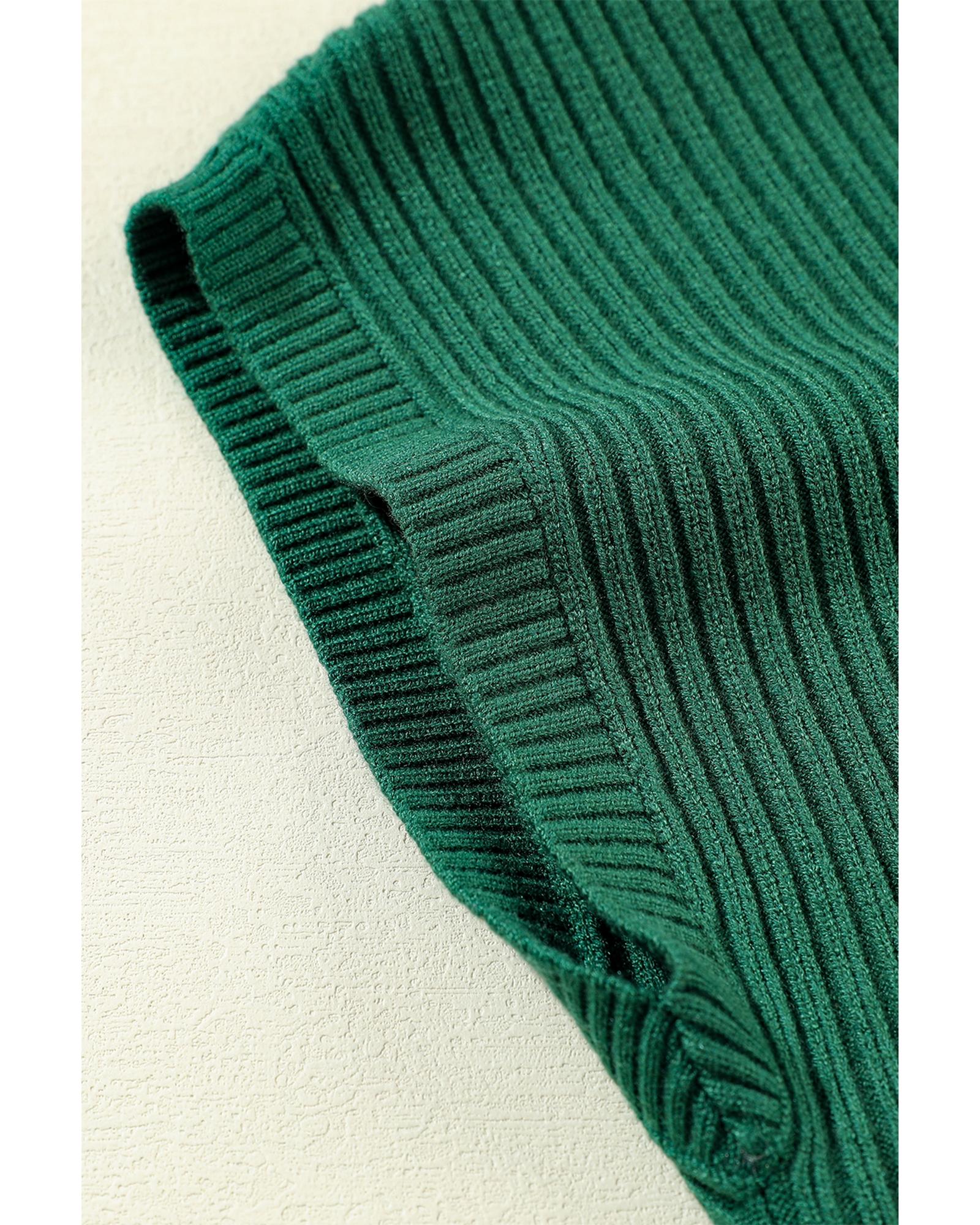 Blackish Green Patch Pocket Ribbed Knit Short Sleeve Sweater – XL