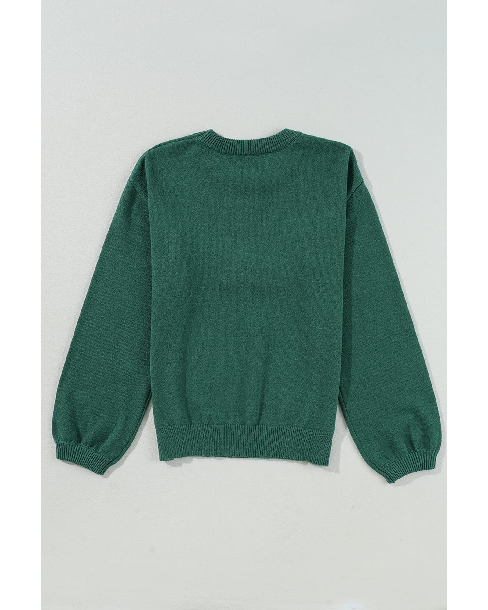Blackish Green Pearl Beaded Merry Casual Sweater – M
