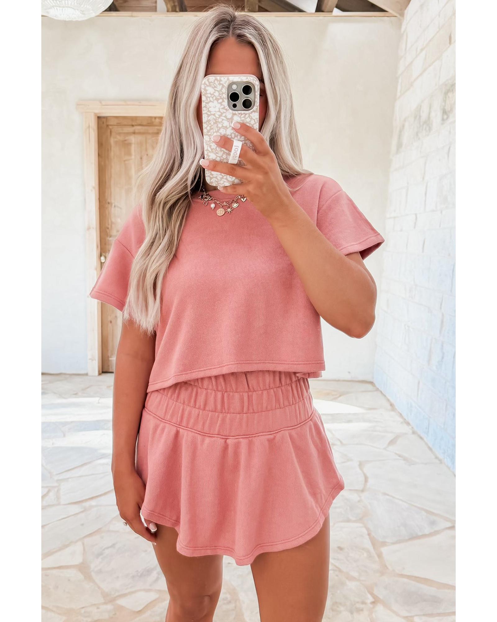 Blossom 2pcs Cropped Tee and Ruffle High Waist Skort Set – M