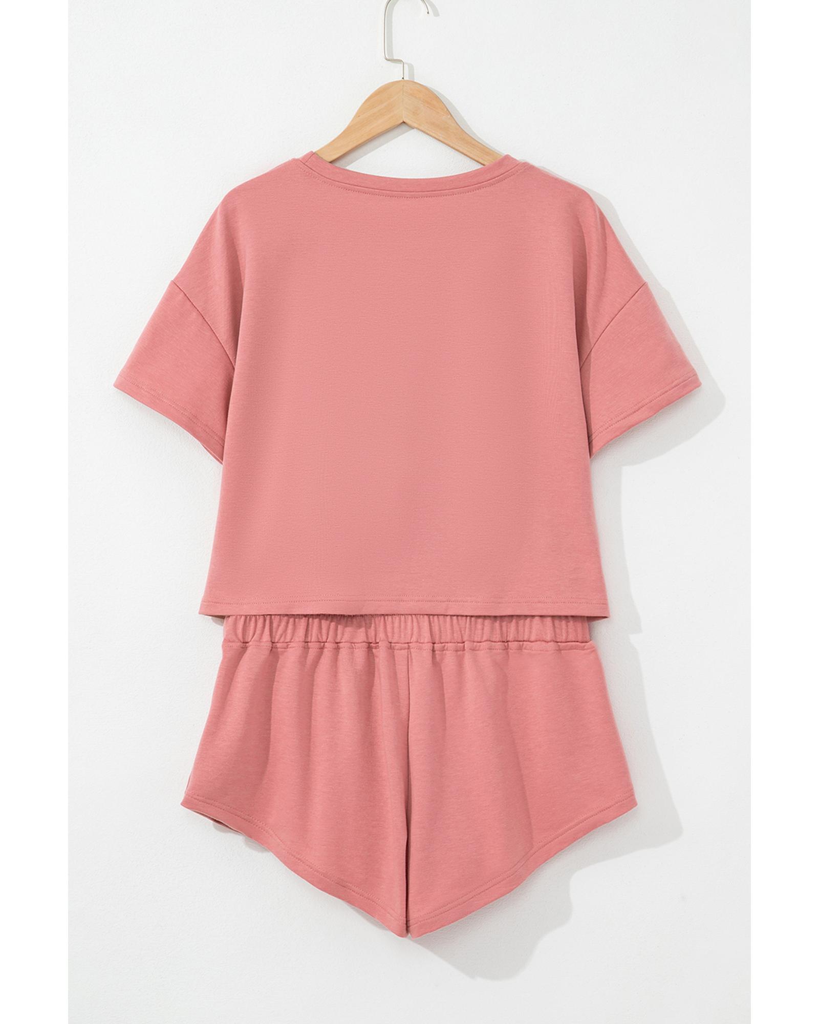 Blossom Bow Crawfish Print T Shirt and High Waist Ruffle Skorts Set – S