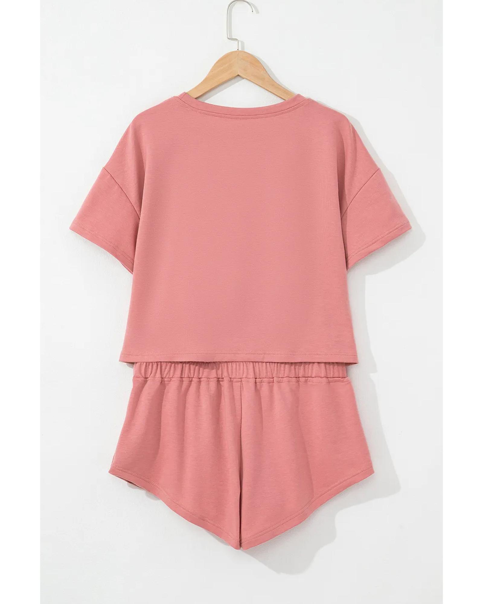 Blossom Sequined Lobster Patched Crop Tee and High Waist Short Set – L