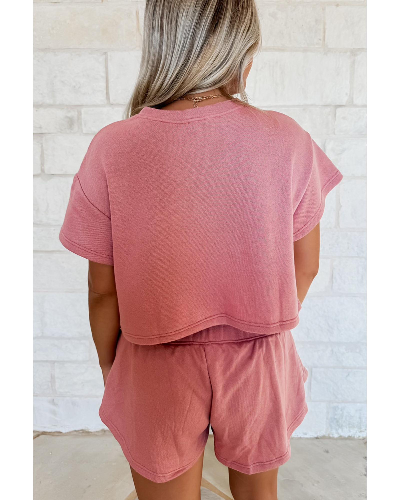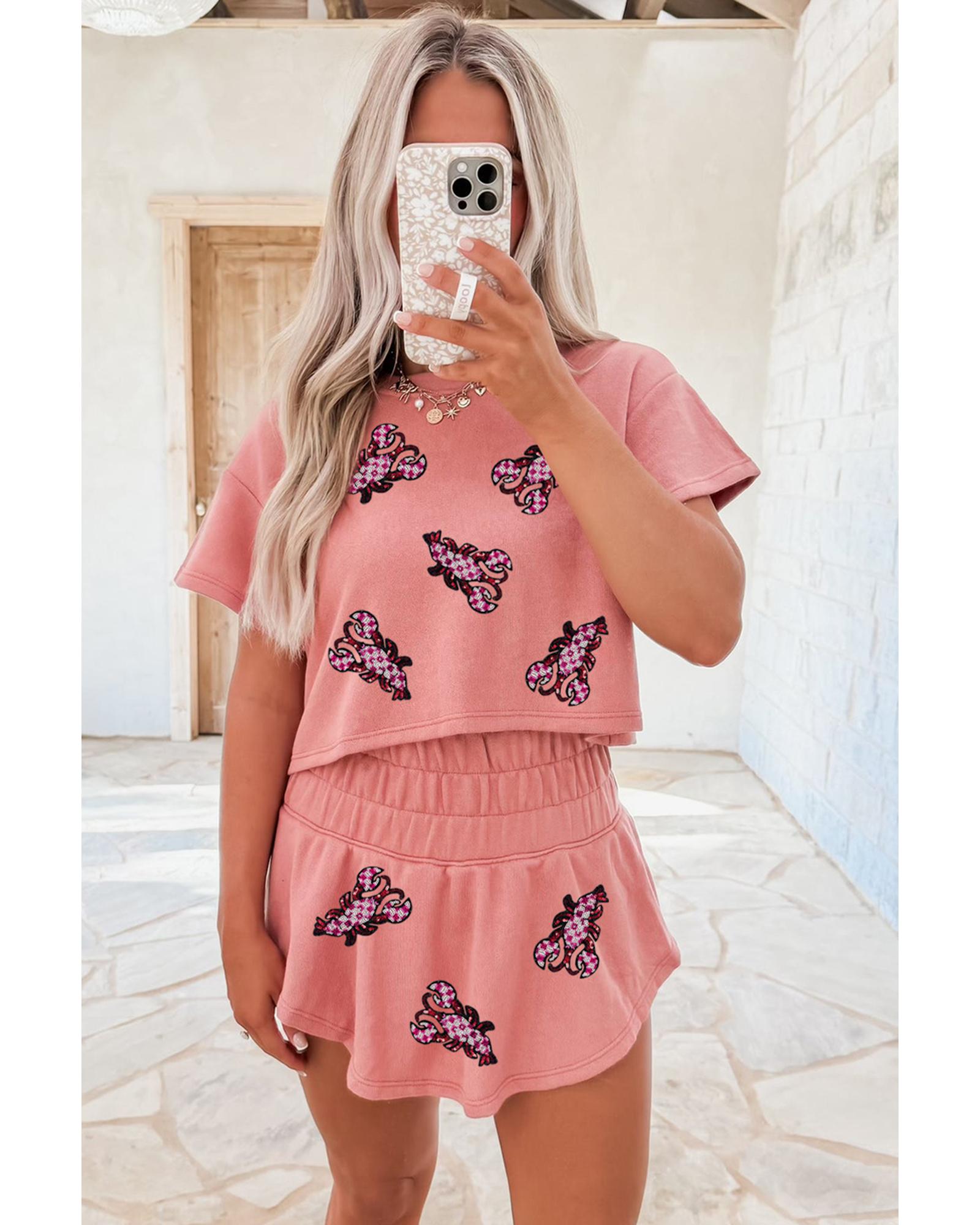 Blossom Sequined Lobster Patched Crop Tee and High Waist Short Set – XL