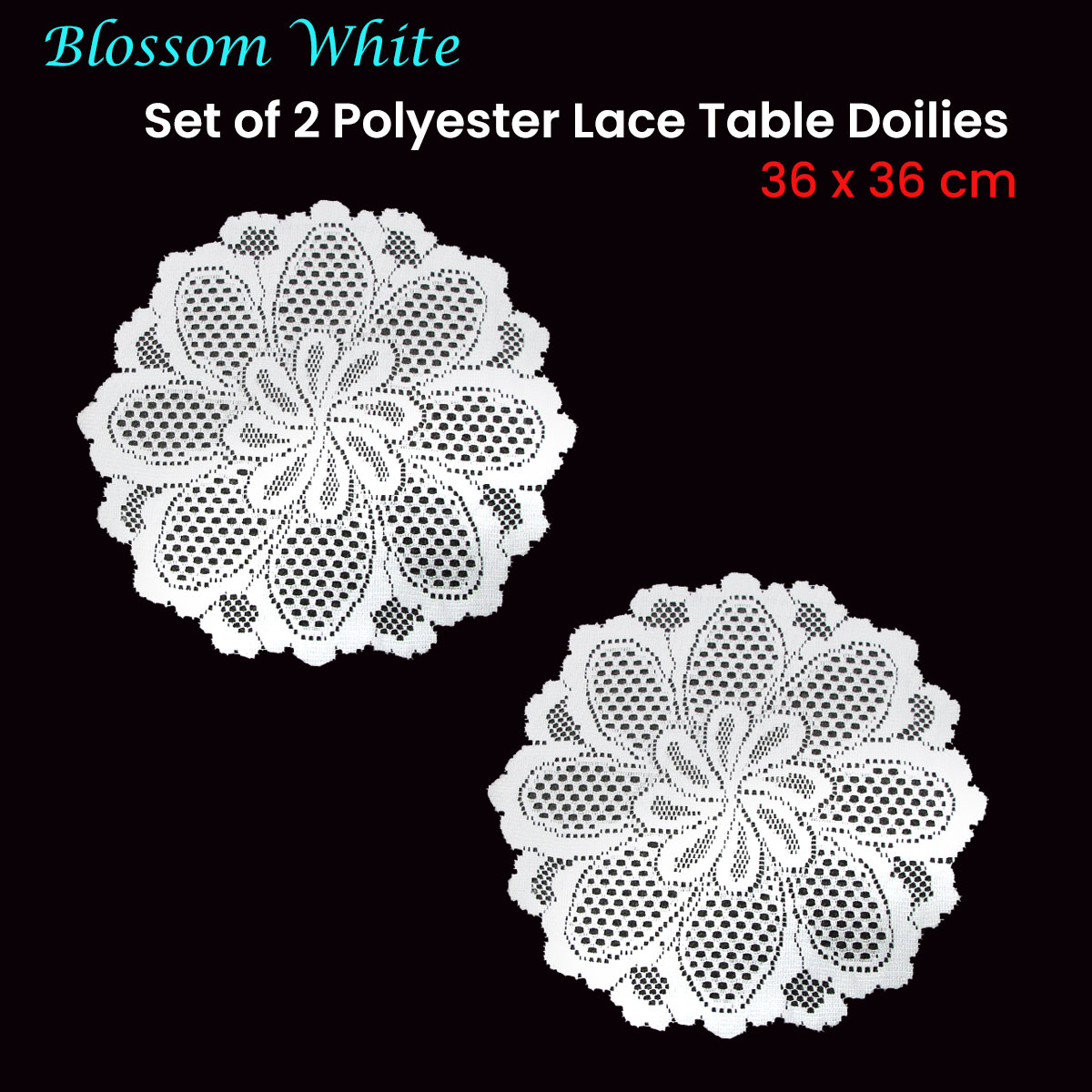 Blossom White Set of 2 Polyester Lace Table Doilies 36 cm Diameter