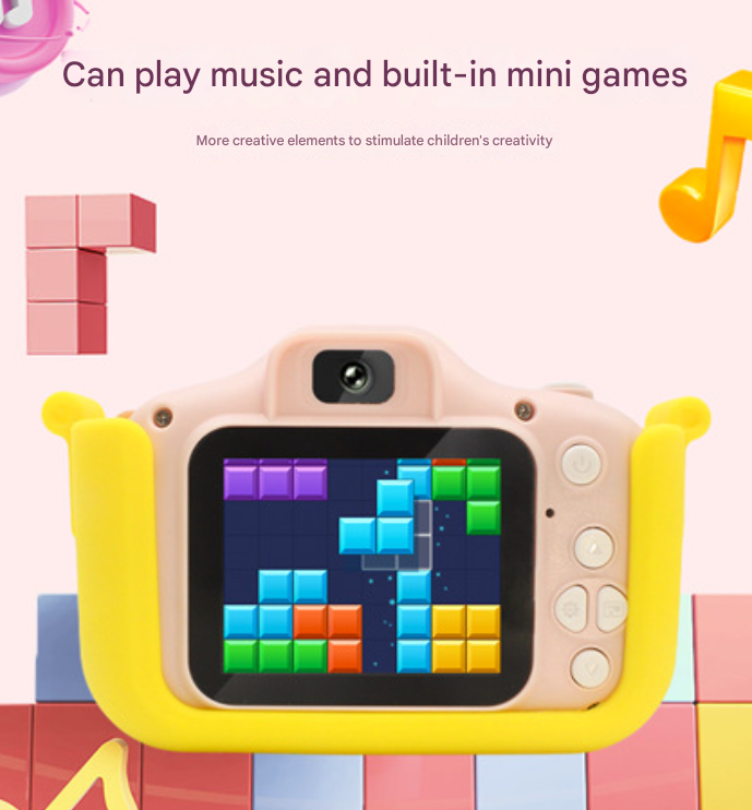 • Adorable Cat-Themed Design: Cute and colorful cat-shaped camera body with soft silicone casing for extra durability and protection.
