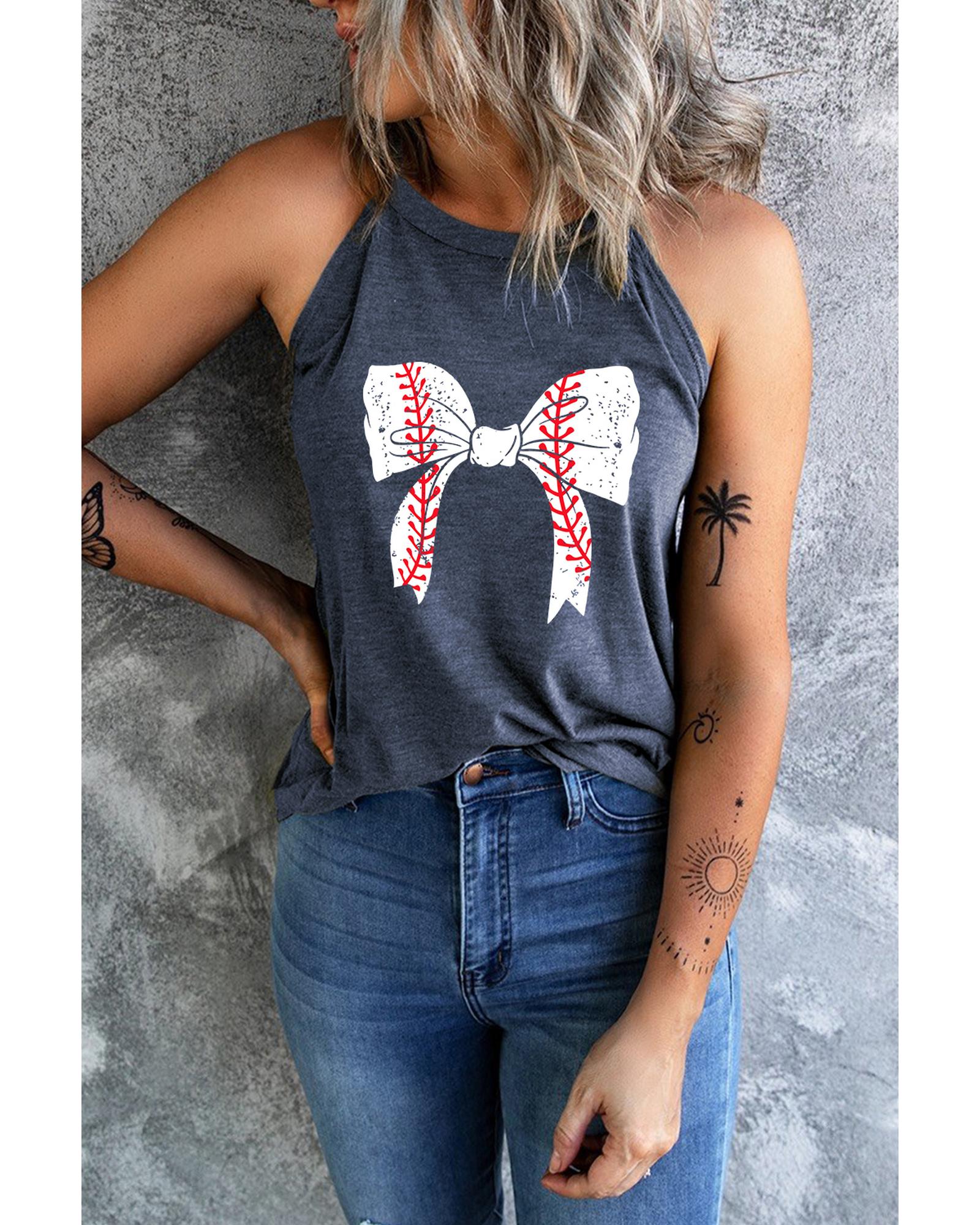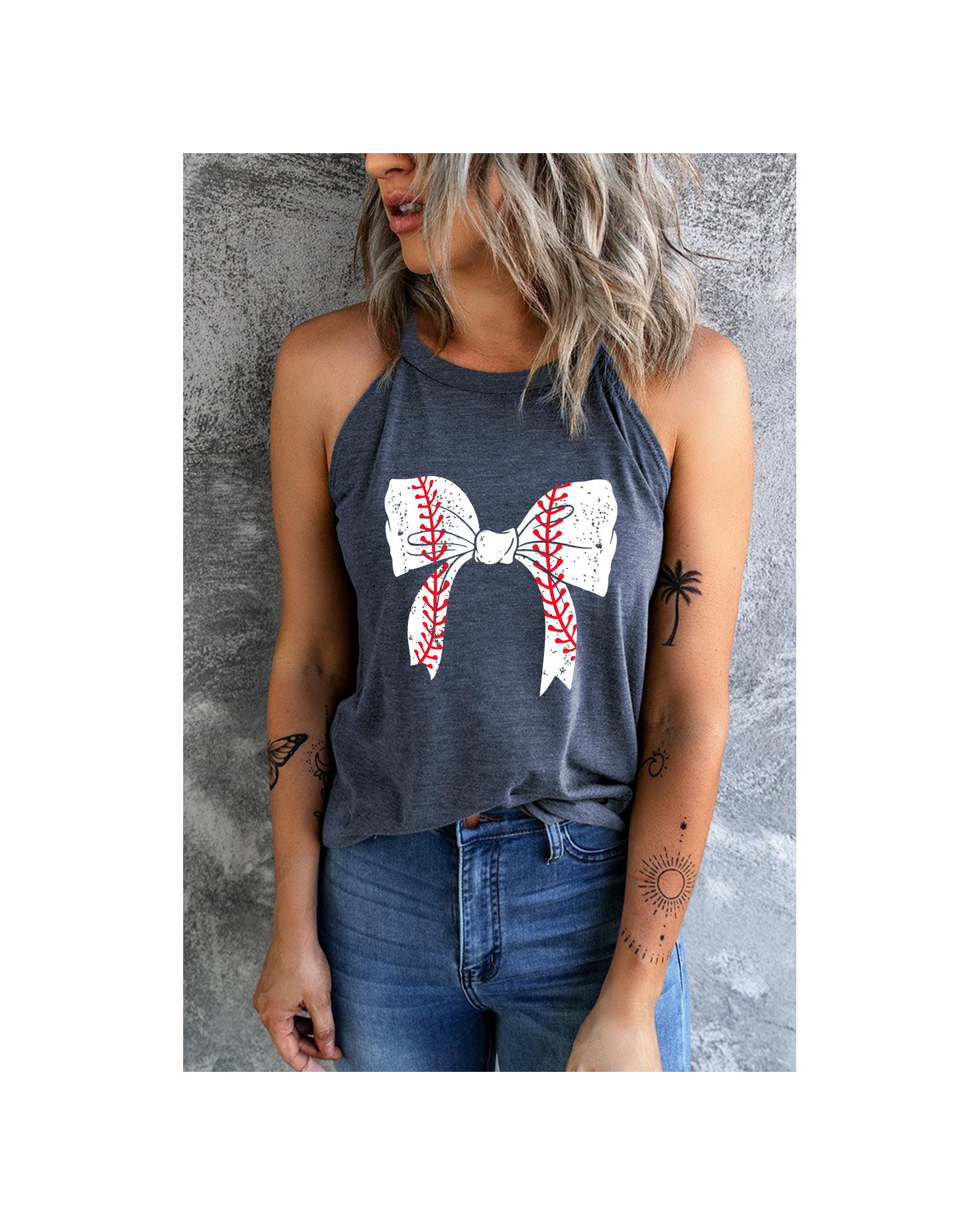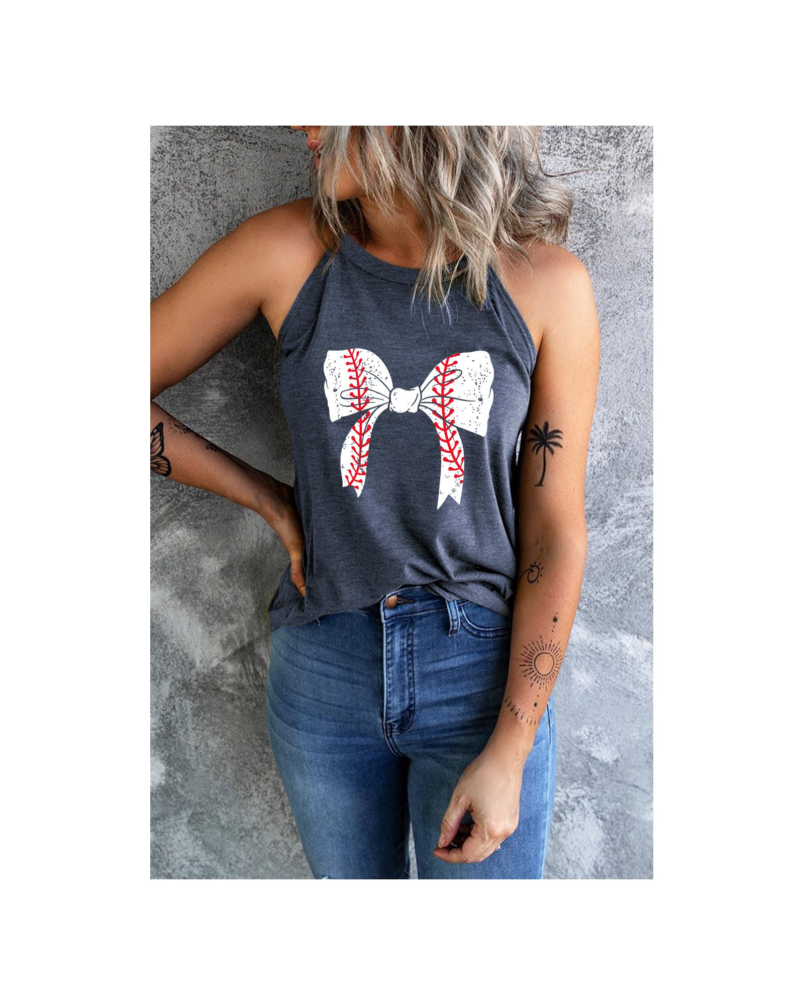 - Blue Baseball Bow Knot Print Slim Fit Crewneck Tank Top