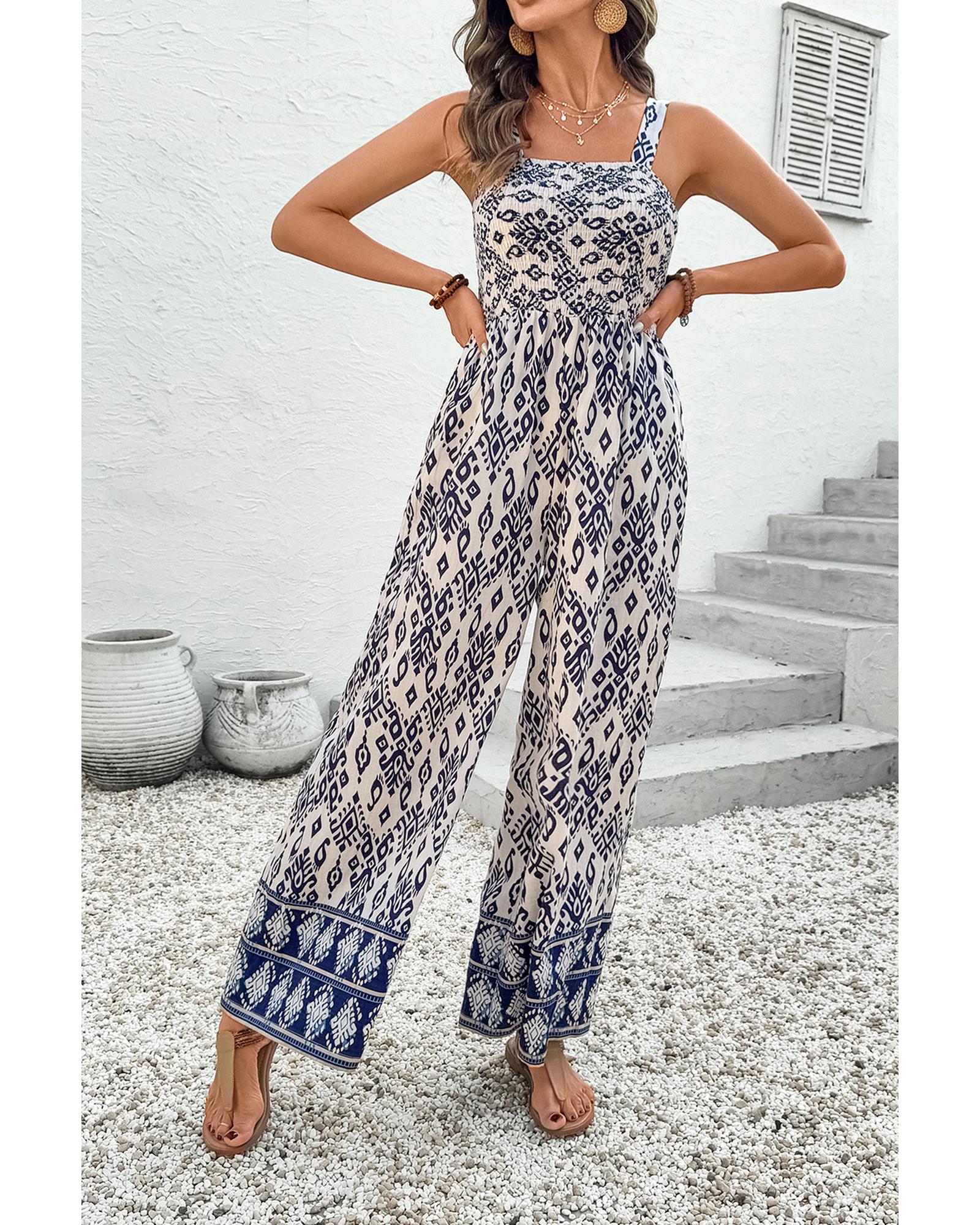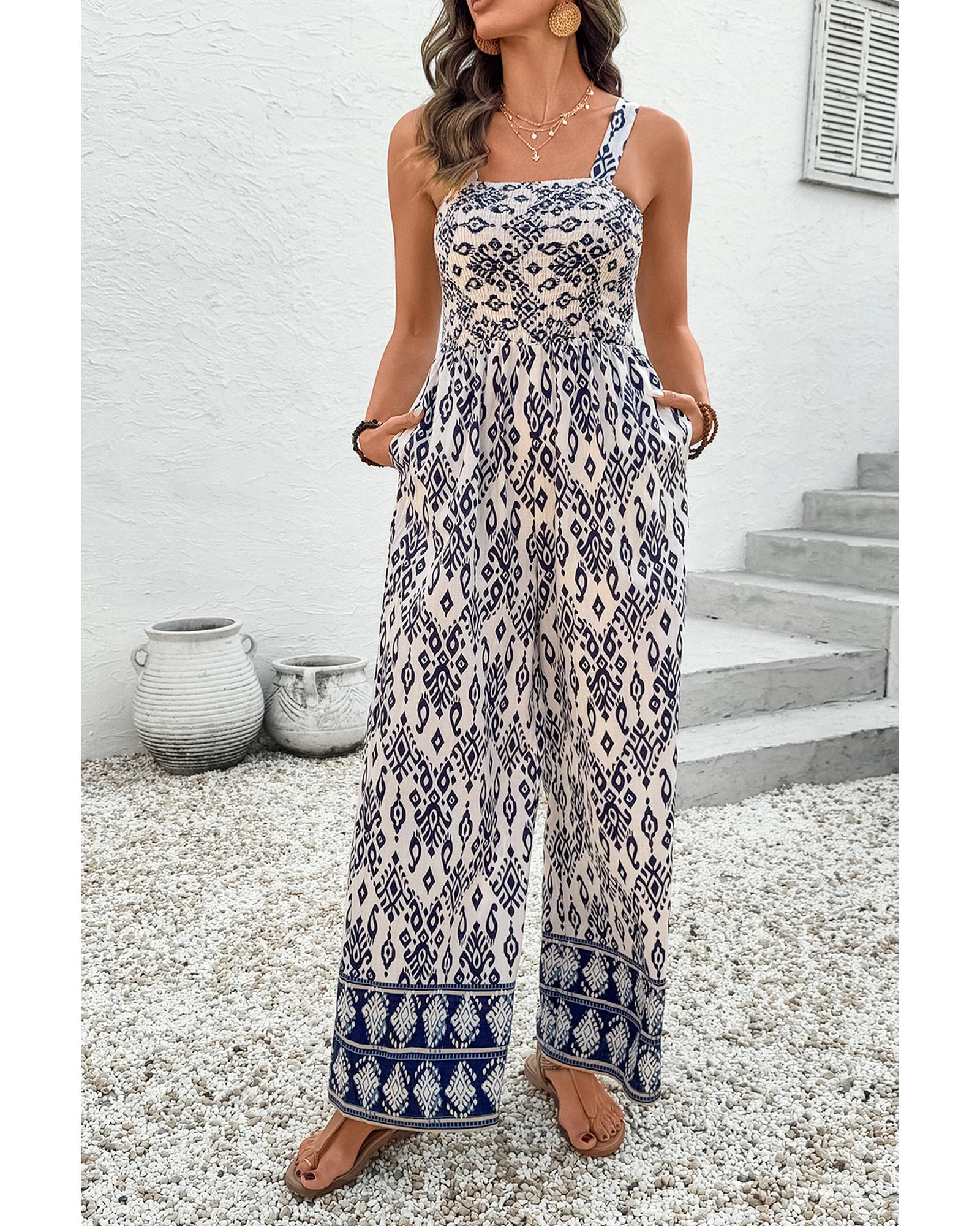 - Boho chic geometric print jumpsuit