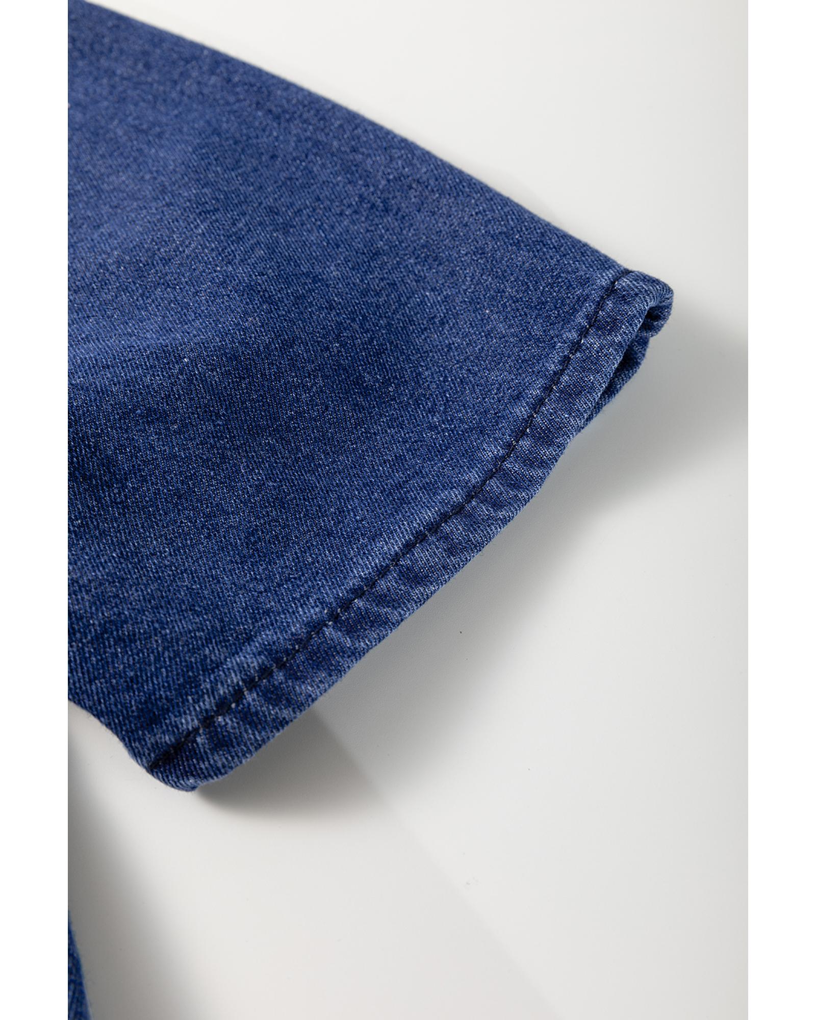 Beau Blue Light Wash Buttoned Chest Pocket Puff Sleeve Denim Jacket - XL