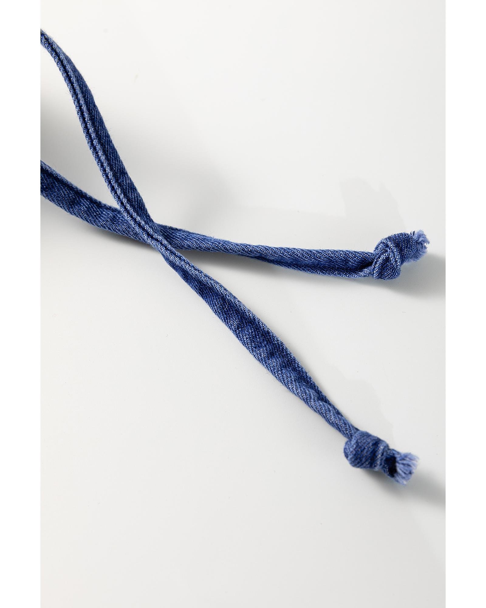 - Blue color with a drawstring waist