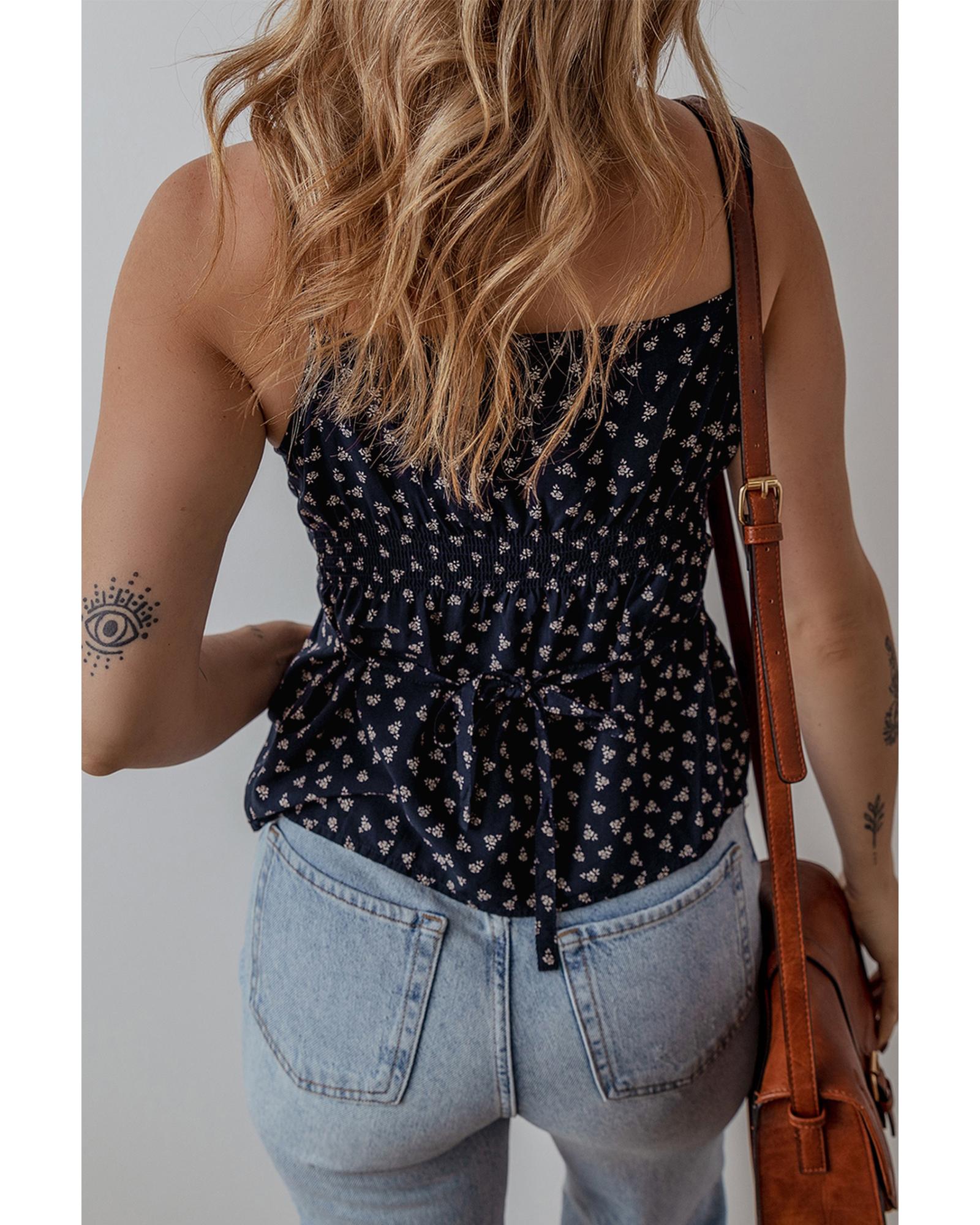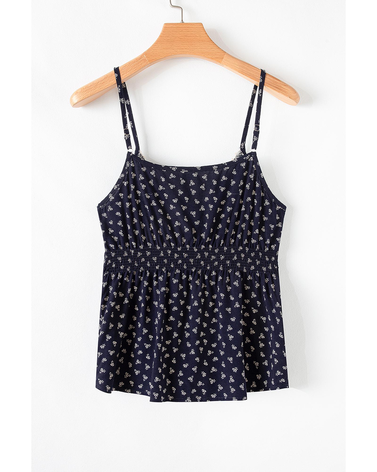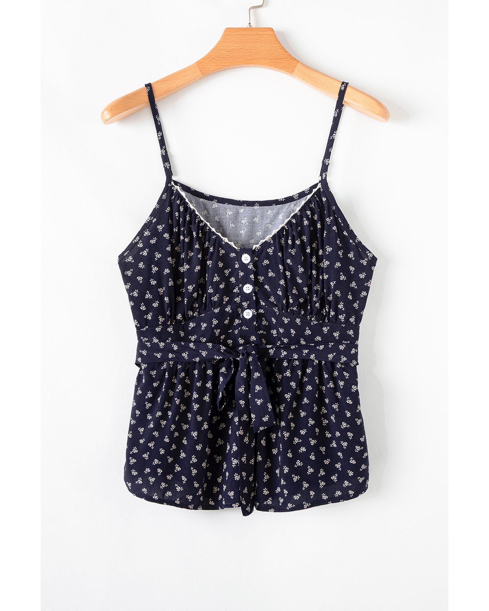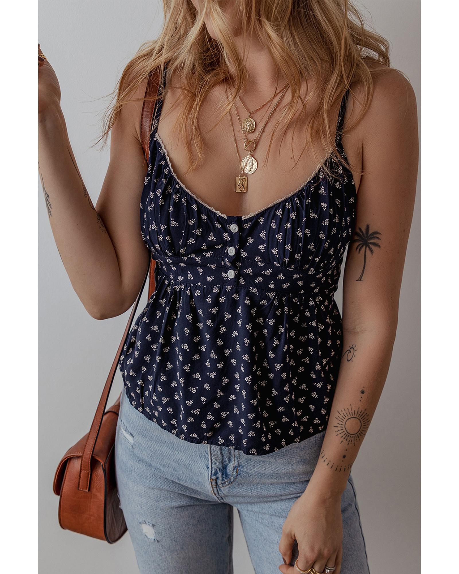 Blue Floral Print Spaghetti Strap Buttoned V Neck Tank Top – XL