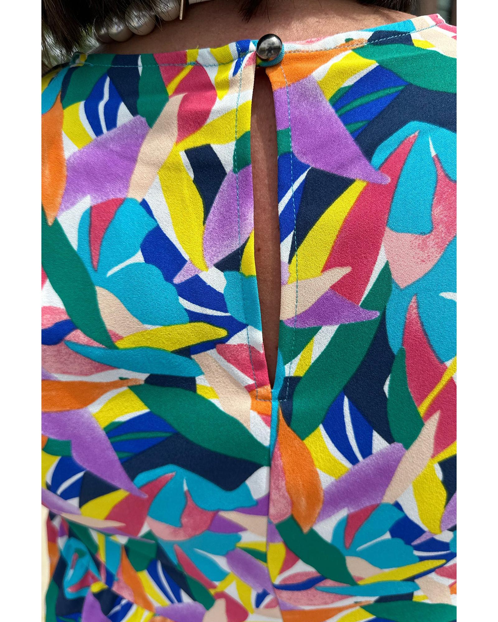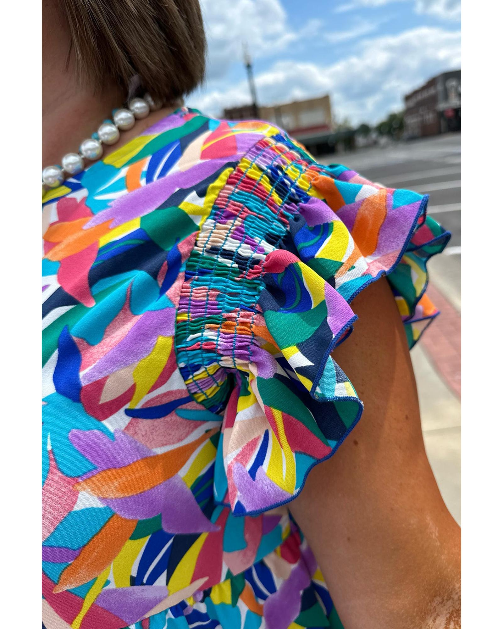 Blue Geometric Print Ruffled Short Sleeve Plus Size Tiered Maxi Dress – 3X