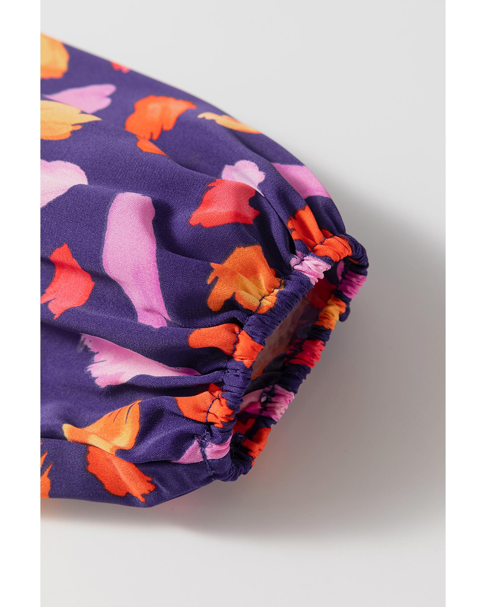 Multicolour Floral Puff Short Sleeve Shirt Mini Dress - L