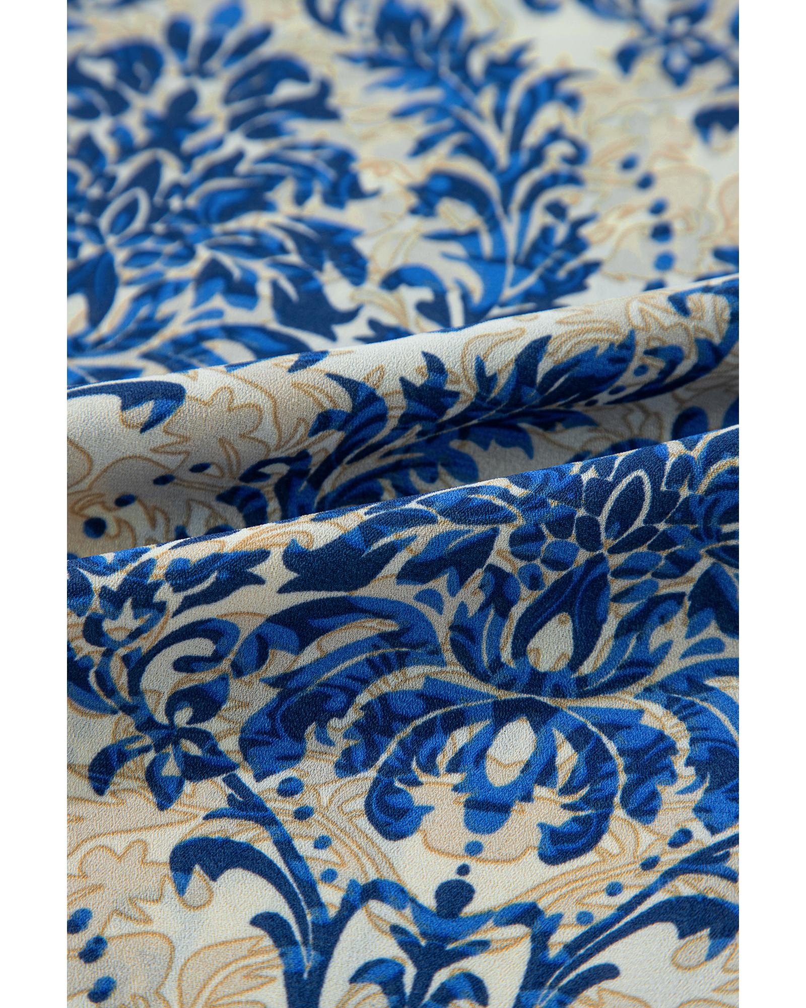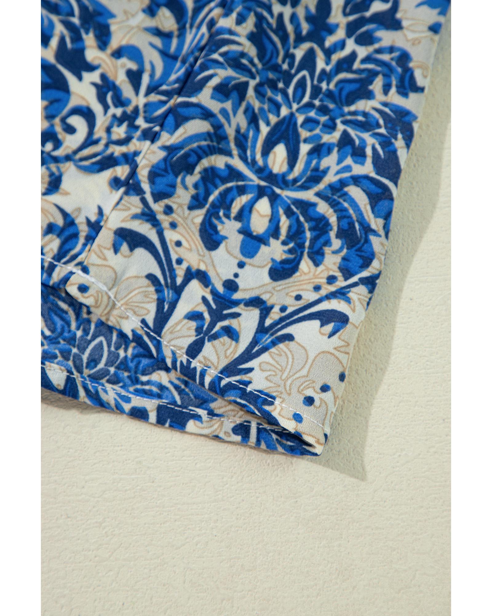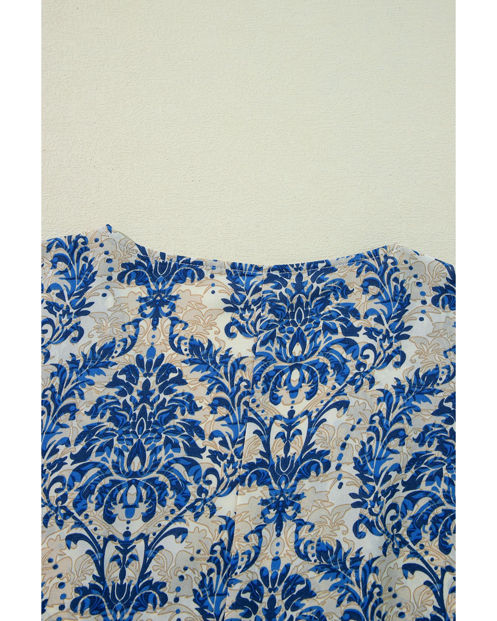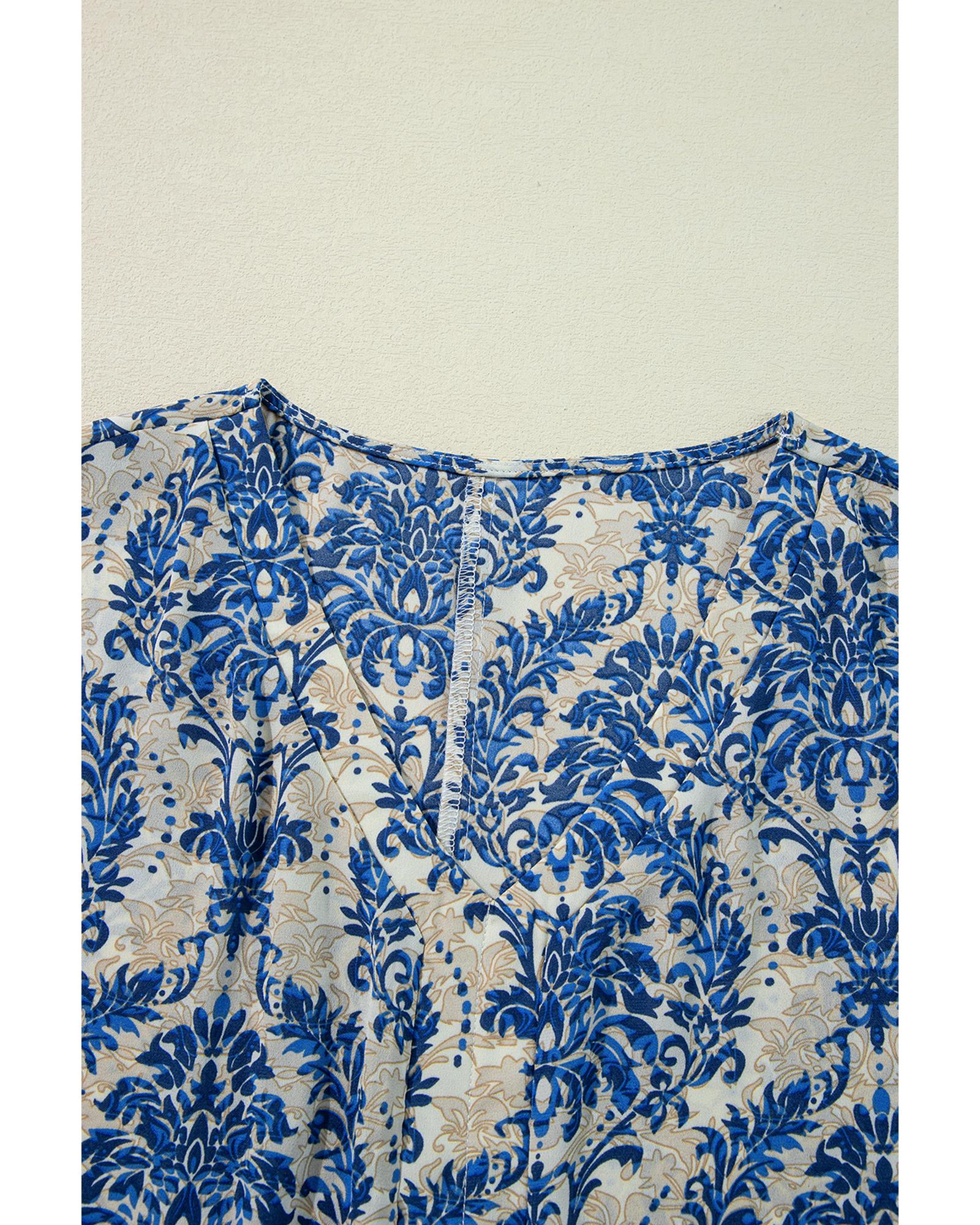 Blue Plus Size Ethnic Printed 3/4 Sleeve V Neck Loose Blouse – 4X