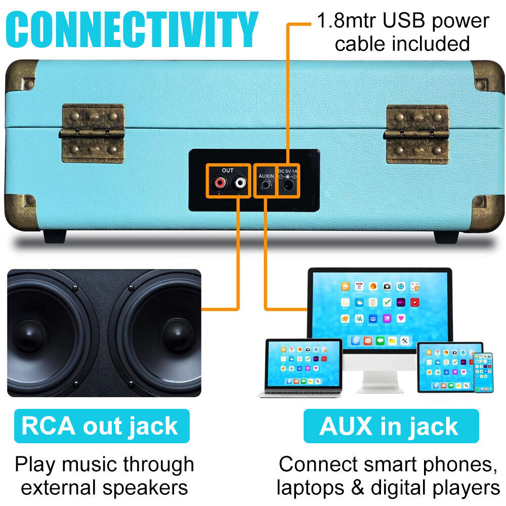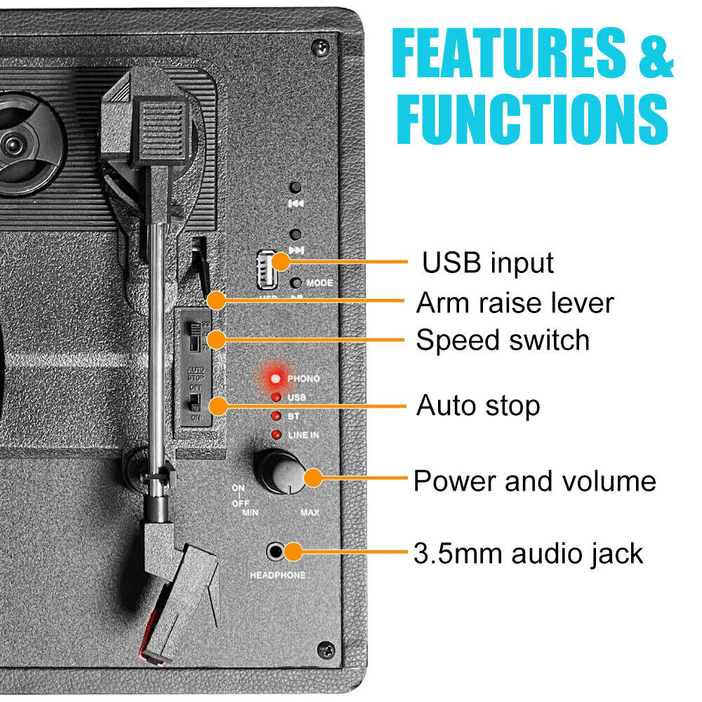 Built-in full range stereo speakers: This is the perfect solution for listening to favorite record collections. It allows you to play all your 7 “, 10 “and 12” records.