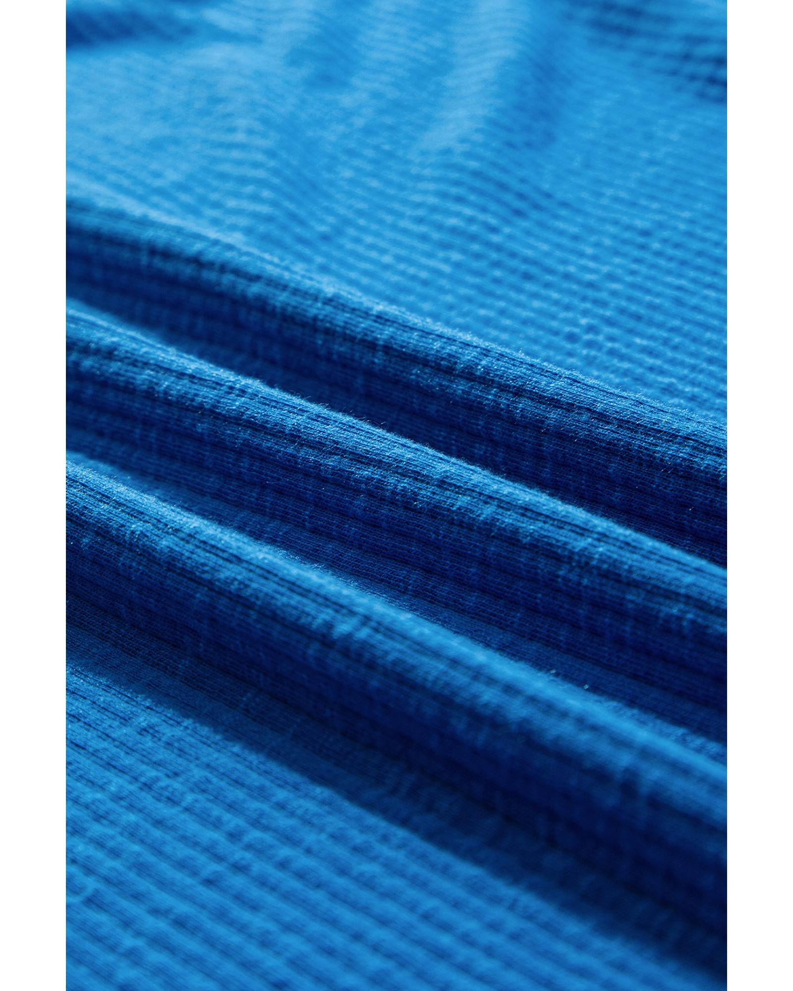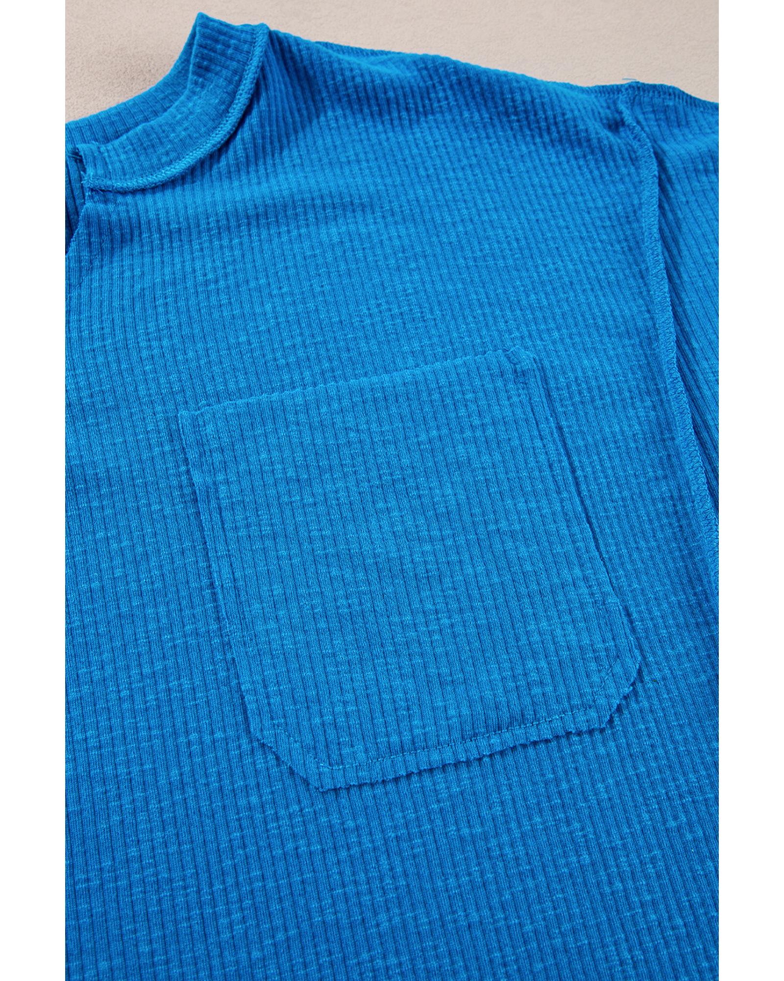 Blue Ribbed Exposed Seam Knit V Neck Long Sleeve Top – S