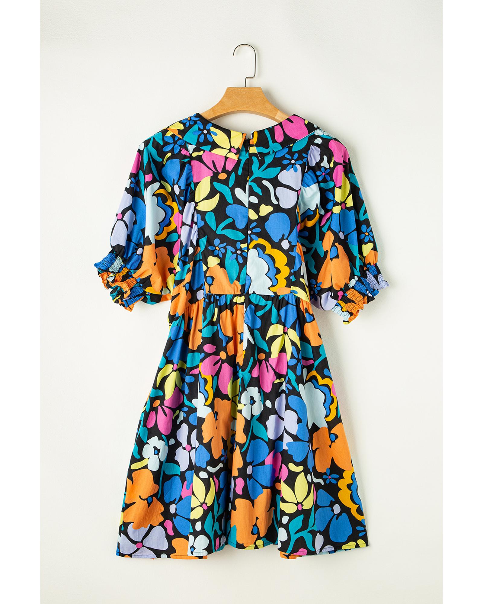 - Blue Split Neck Collared Plus Floral Dress