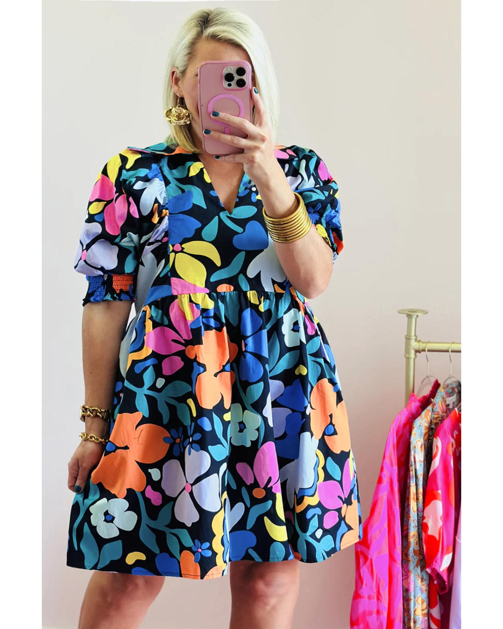 Blue Split Neck Collared Plus Floral Dress – 3X