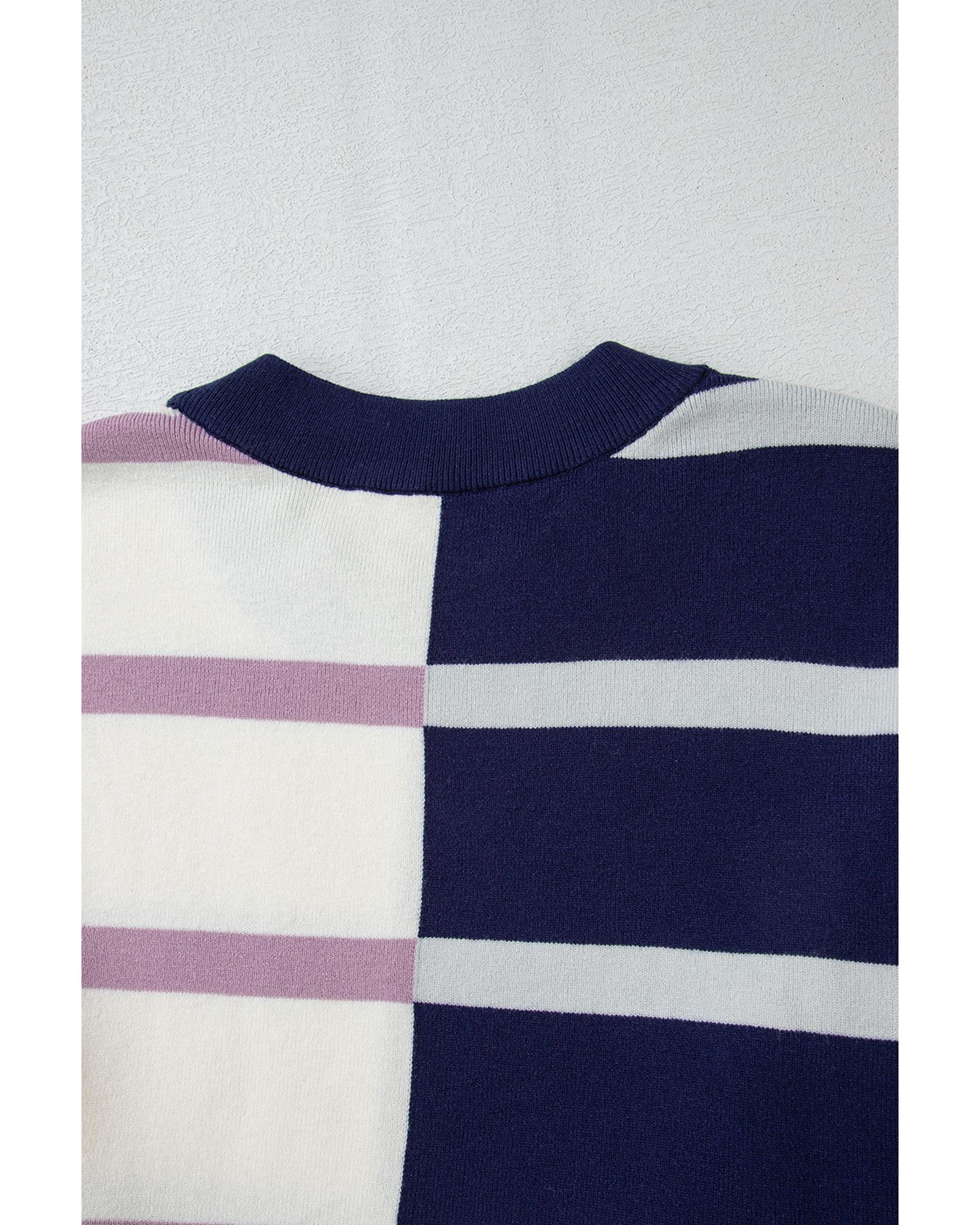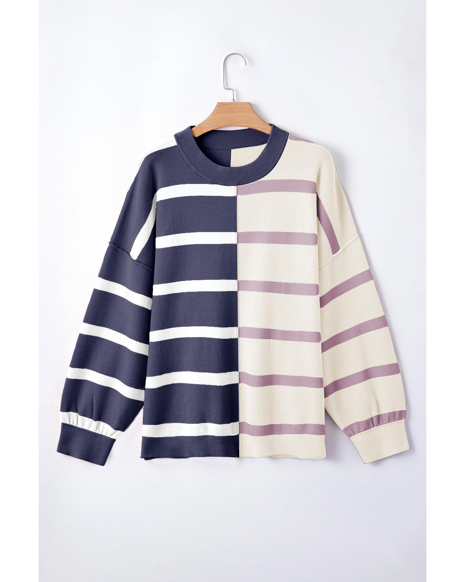 - Trendy Blue Stripe Colorblock Oversized Sweater