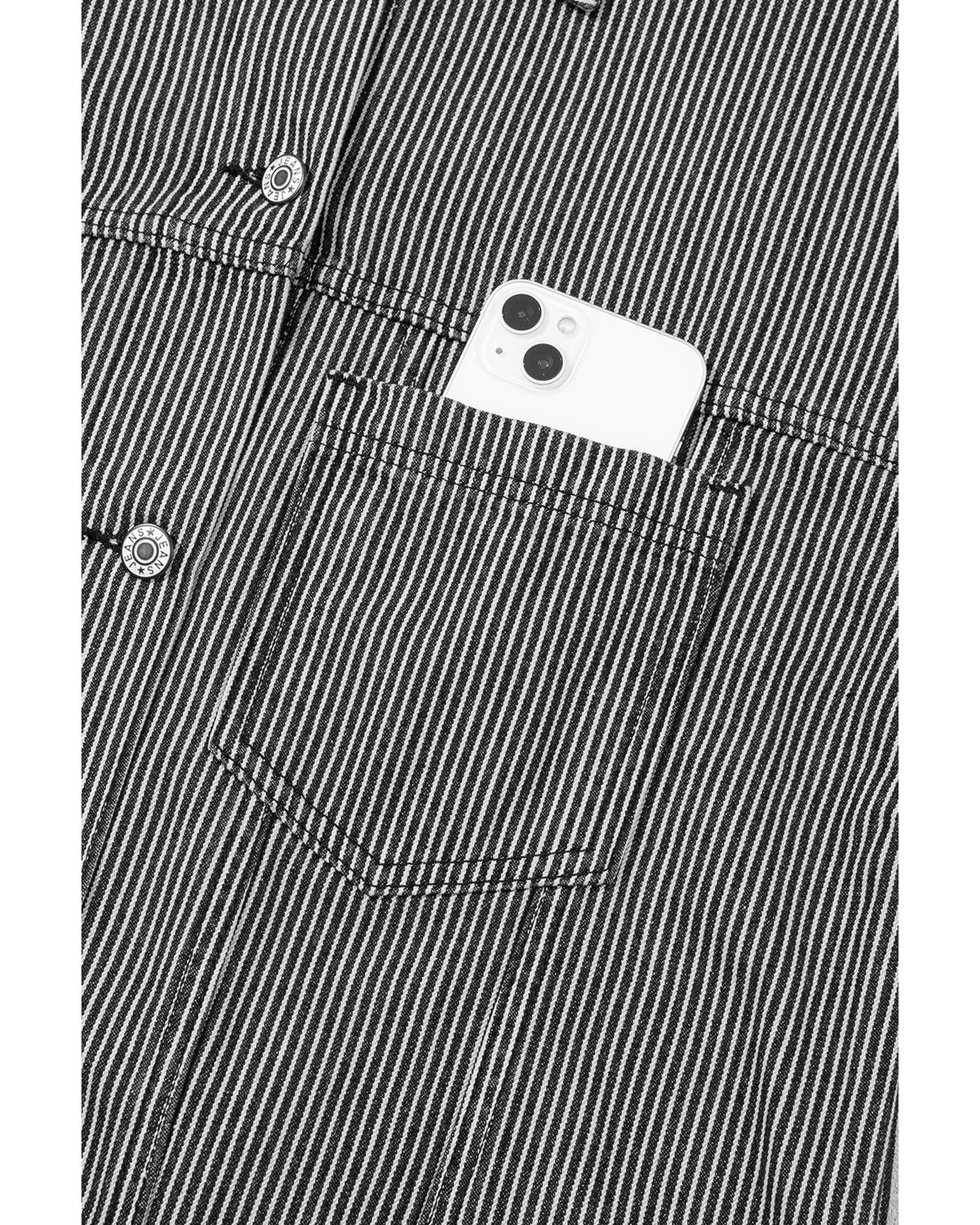 - Blue Stripe Washed Oversize Pocketed Denim Jacket