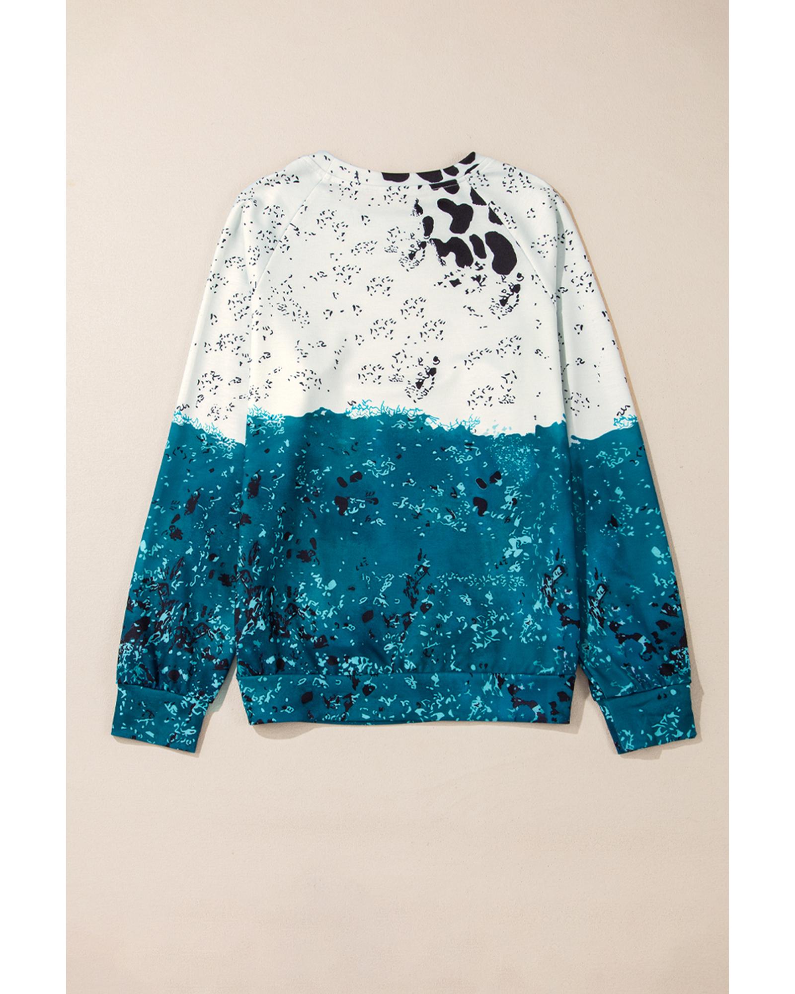 Blue Tie Dye Cow Color Block Pullover Sweatshirt – S