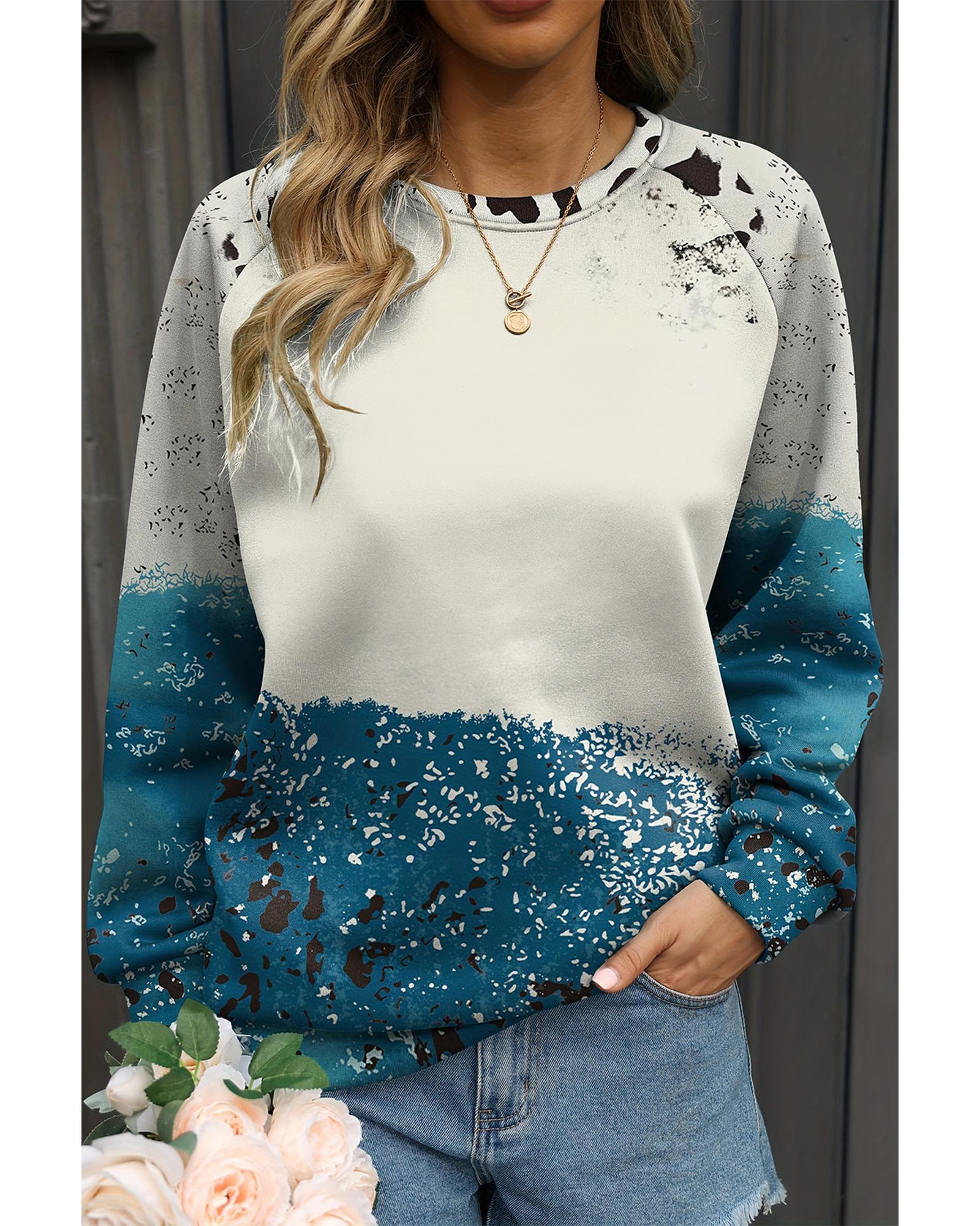 Blue Tie Dye Cow Color Block Pullover Sweatshirt – XL