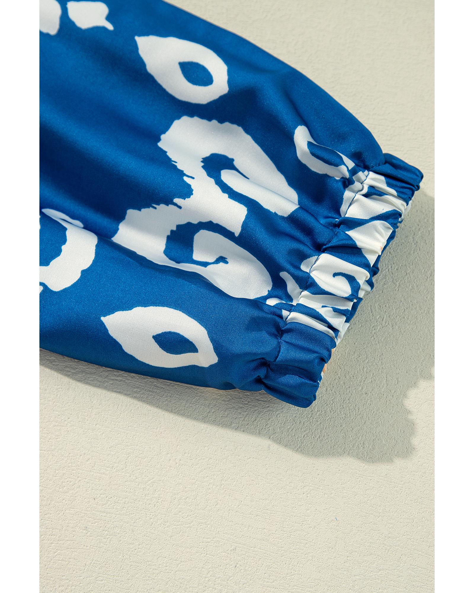 Blue Boho Printed 3/4 Sleeve Tied Neck Blouse - S