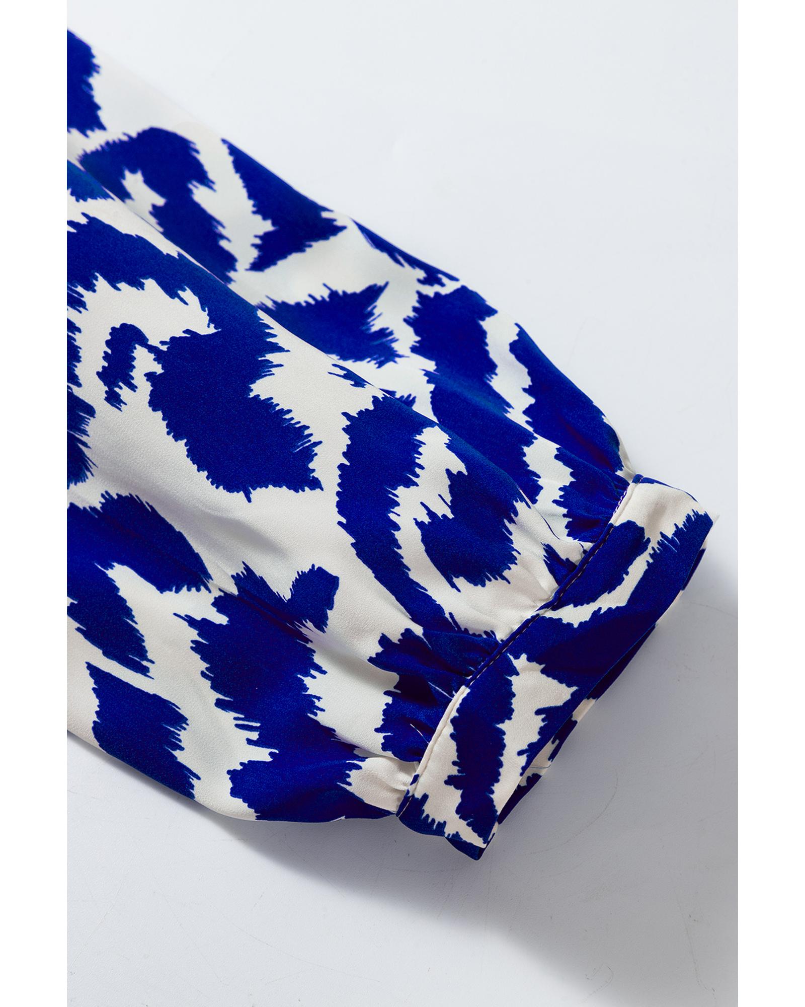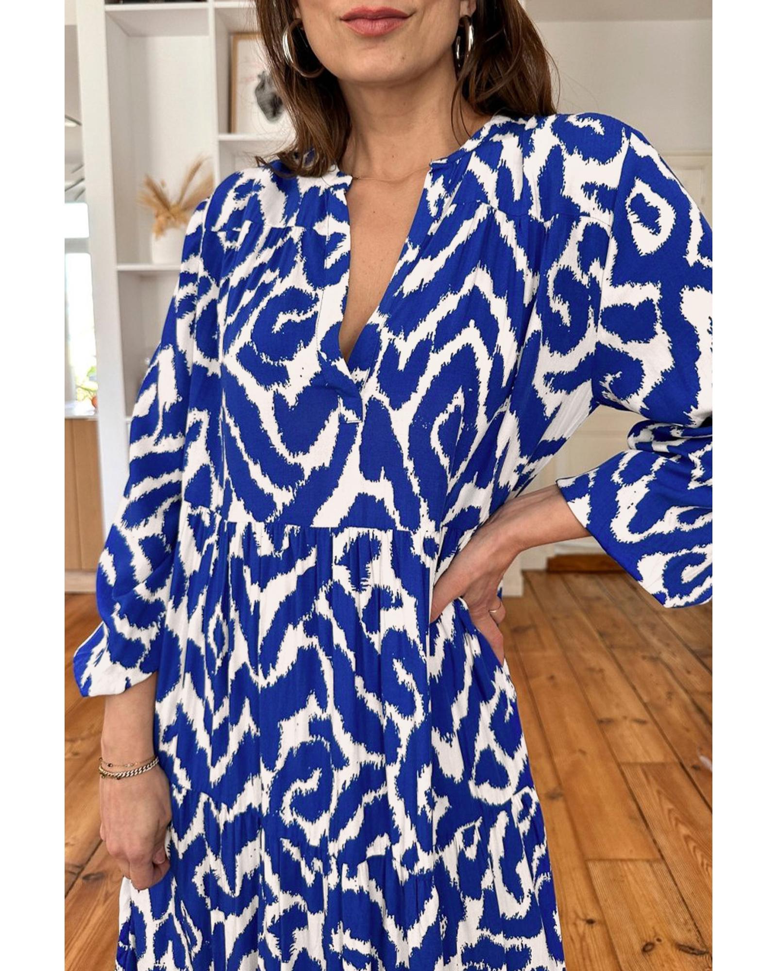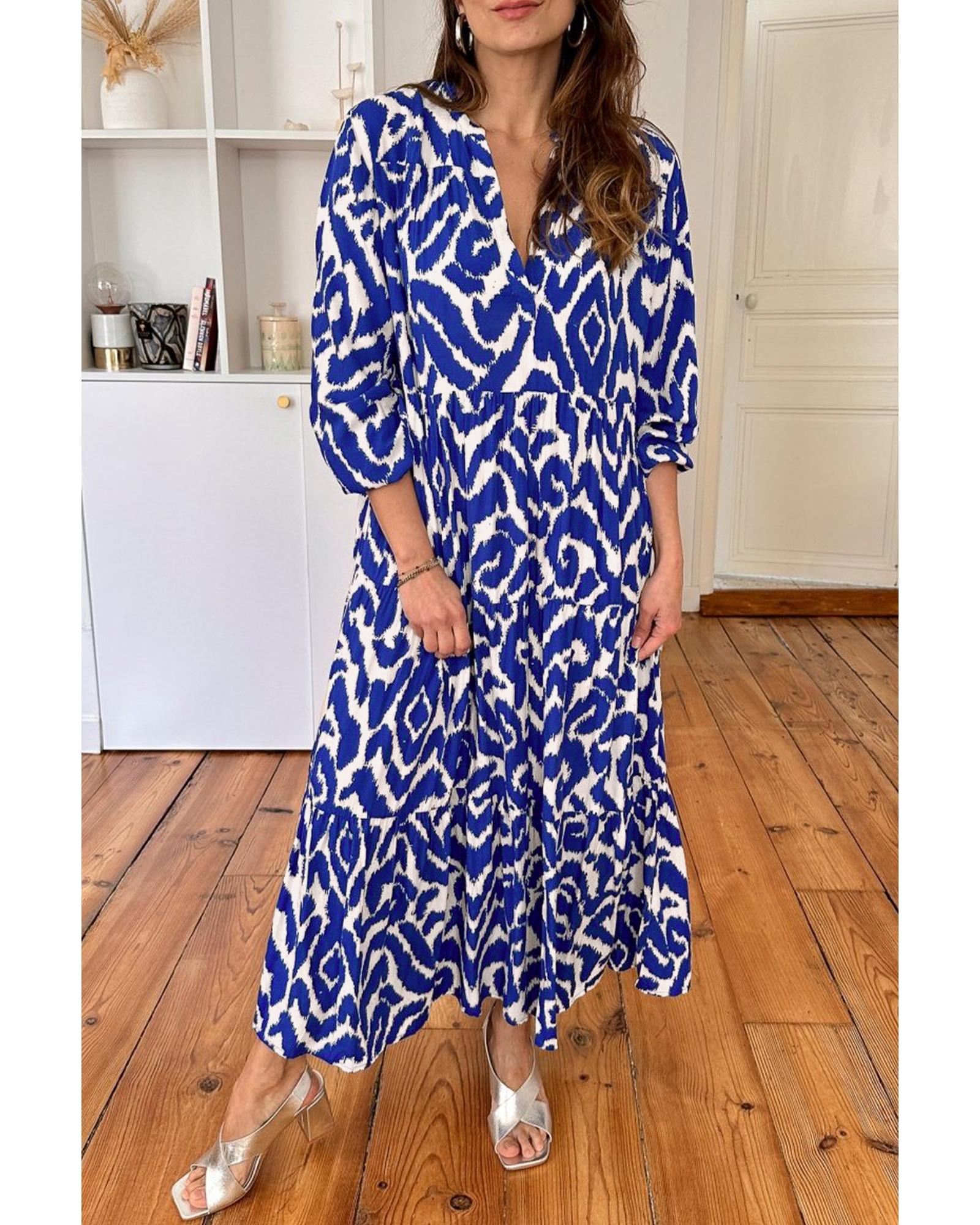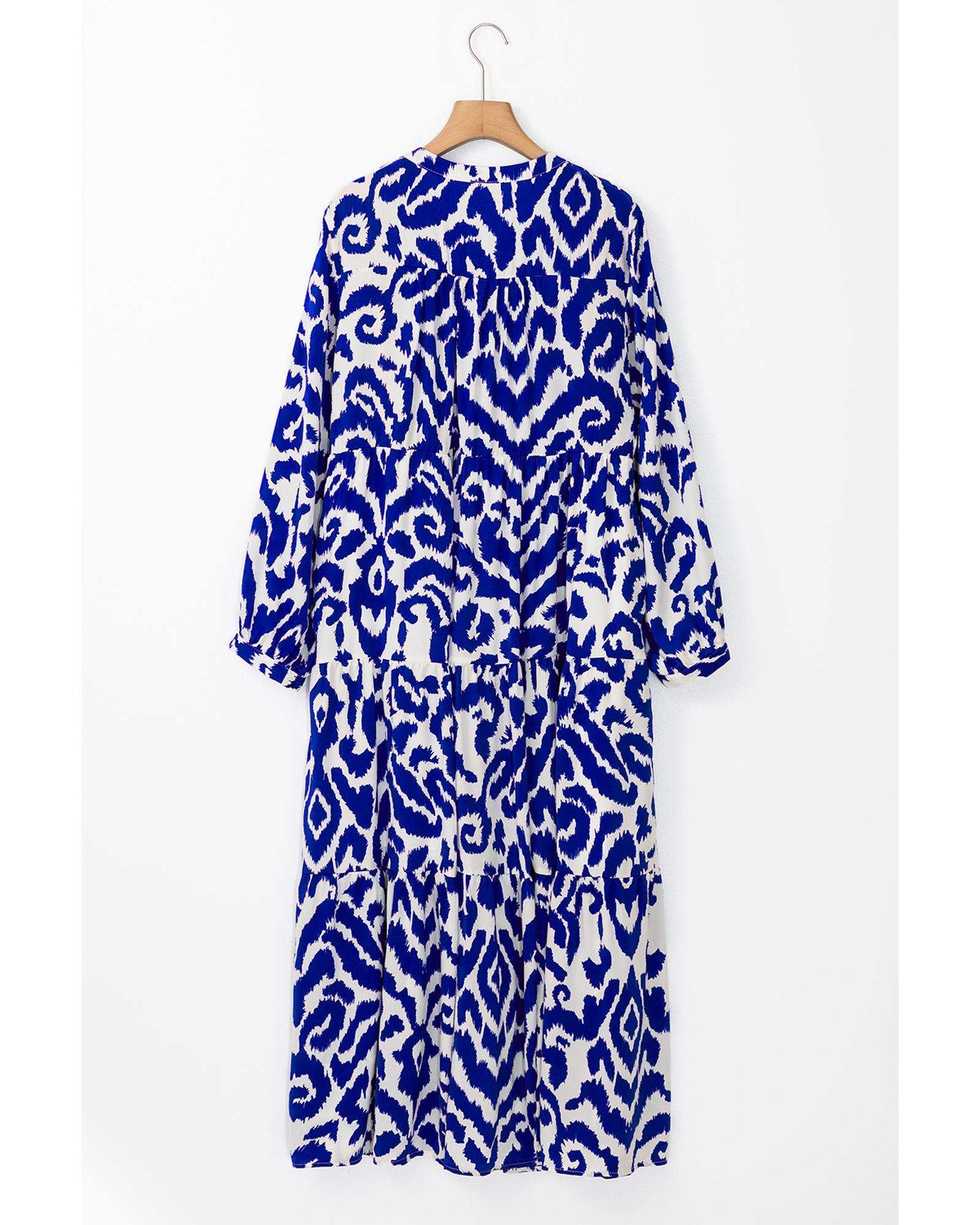 Blue Western Abstract Geometric Printed Maxi Dress – M