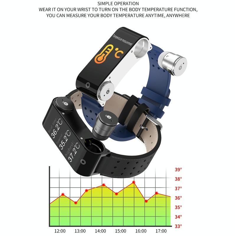 Bluetooth Headset Bracelet With Hr / Bp Monitoring & Temp. Measurement – Blue