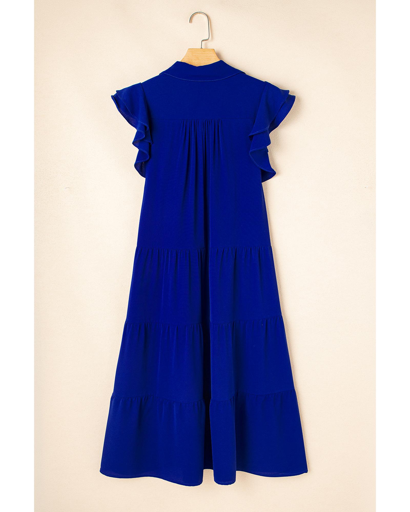 Bluing Ruffled Short Sleeve Collared V Neck Tiered Midi Dress – XL