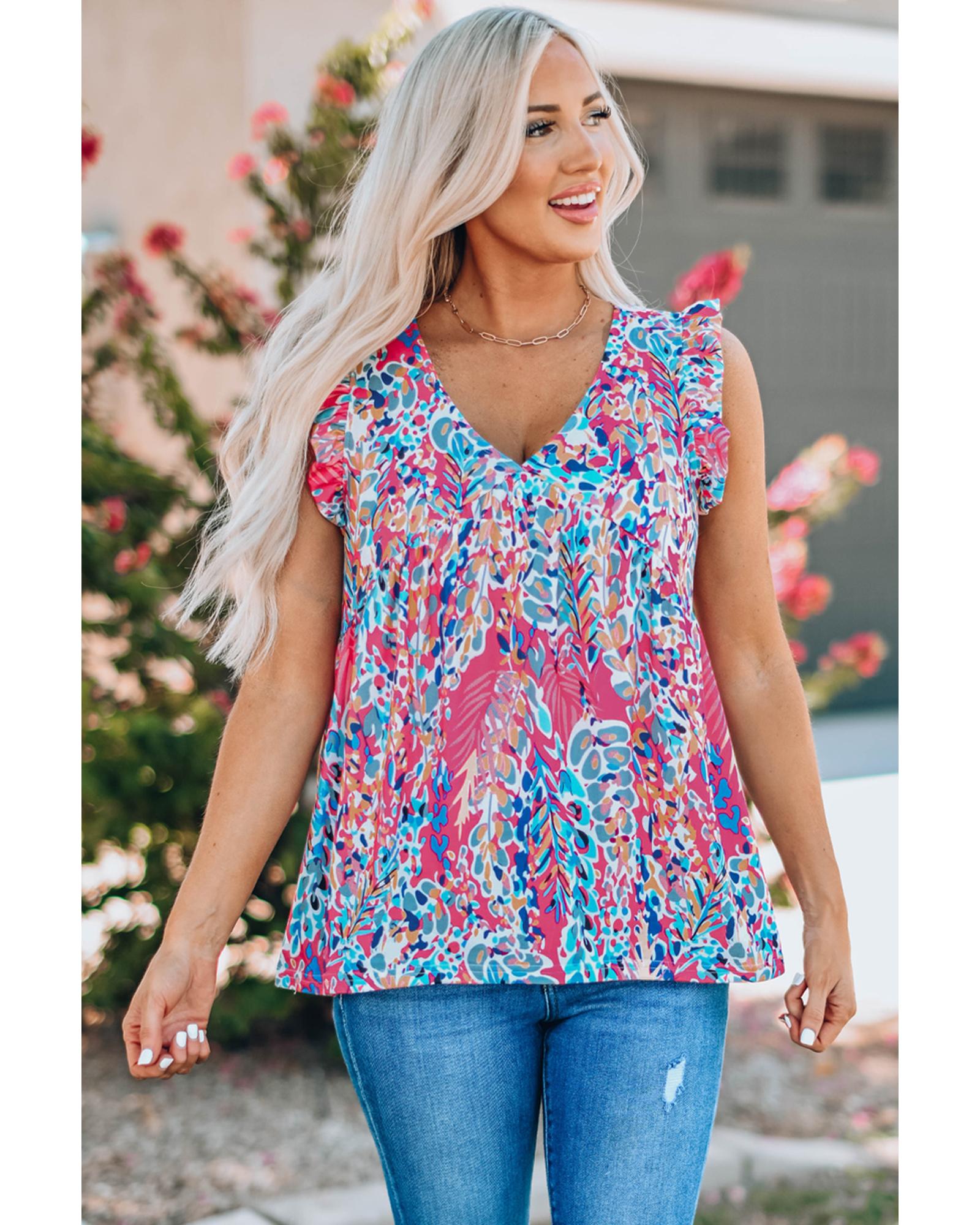 Boho Pattern Print Flounce V Neck Tank Top – L