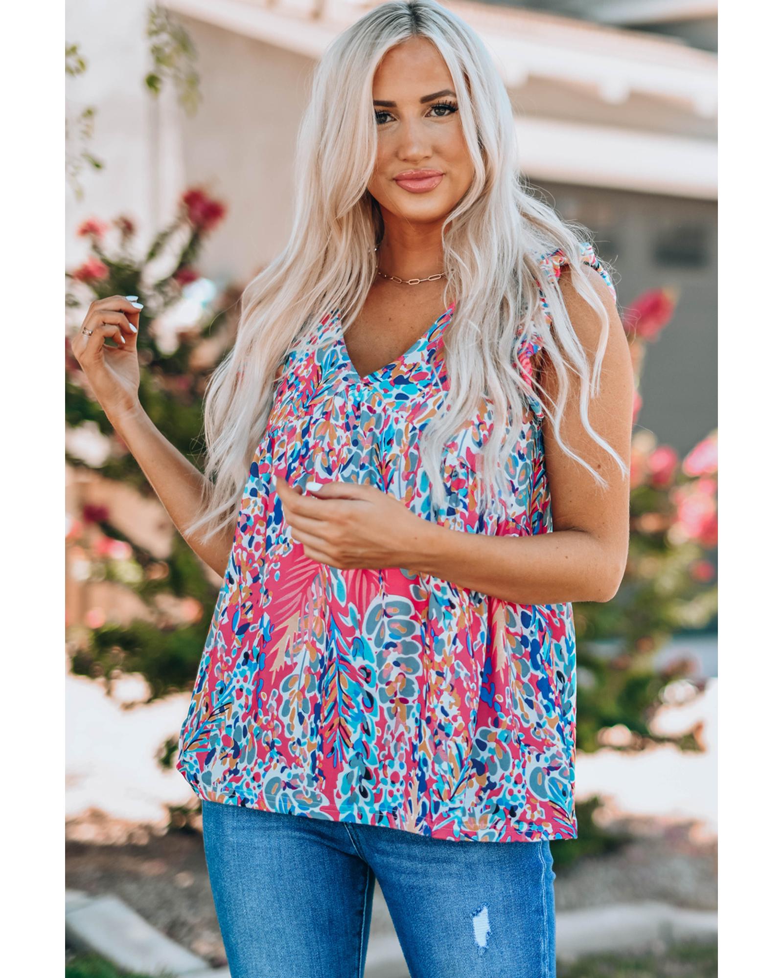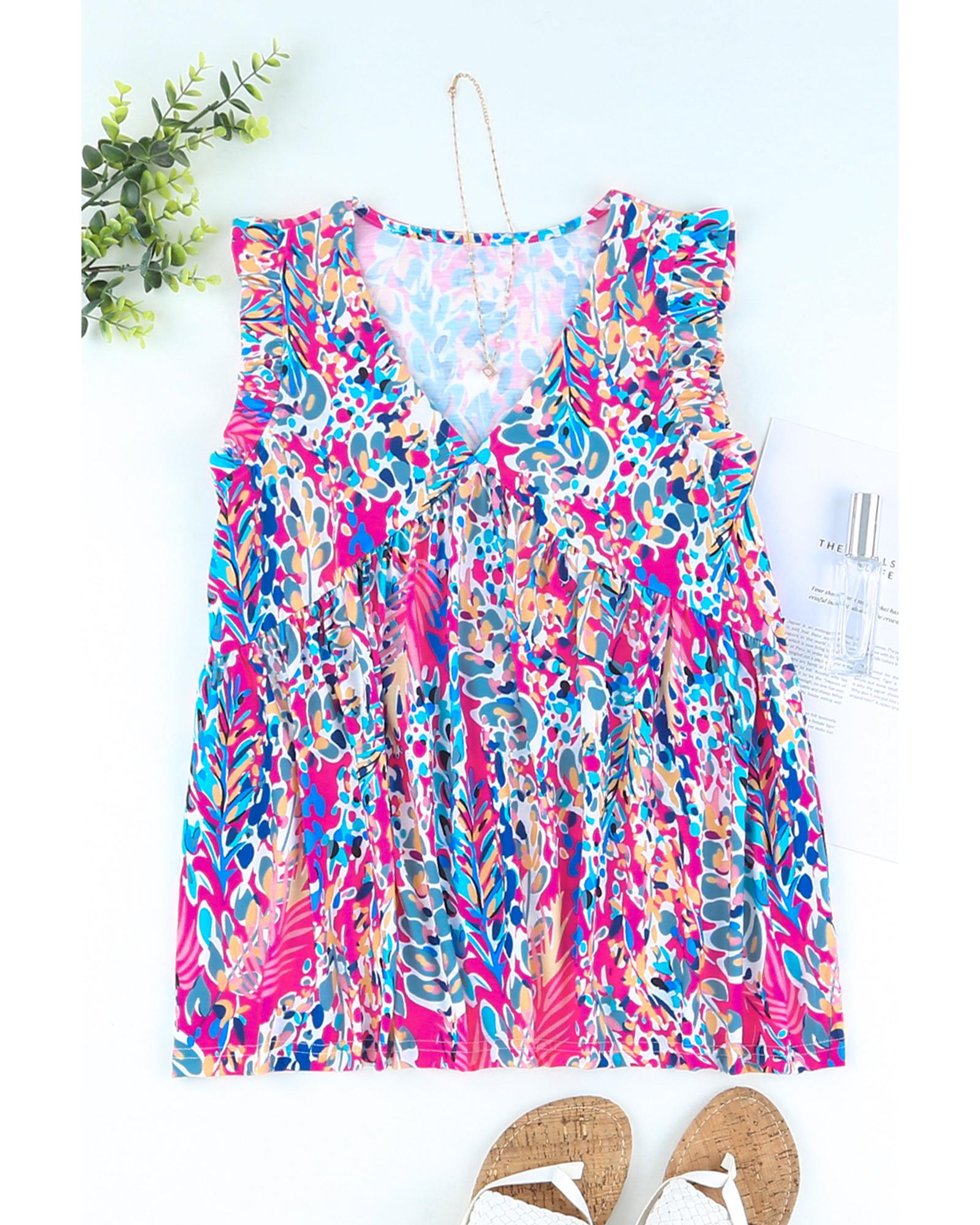Boho Pattern Print Flounce V Neck Tank Top – M