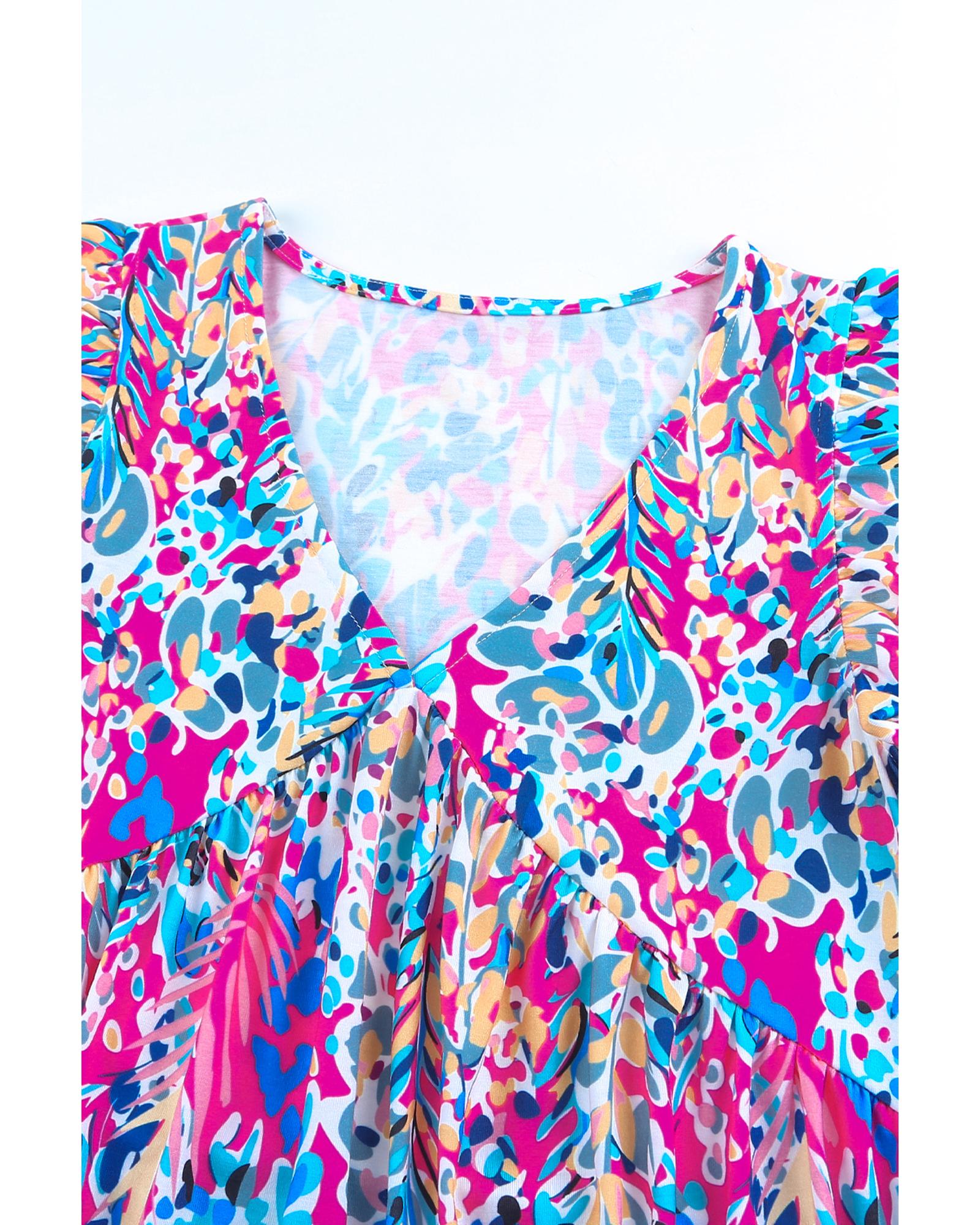 Boho Pattern Print Flounce V Neck Tank Top – S