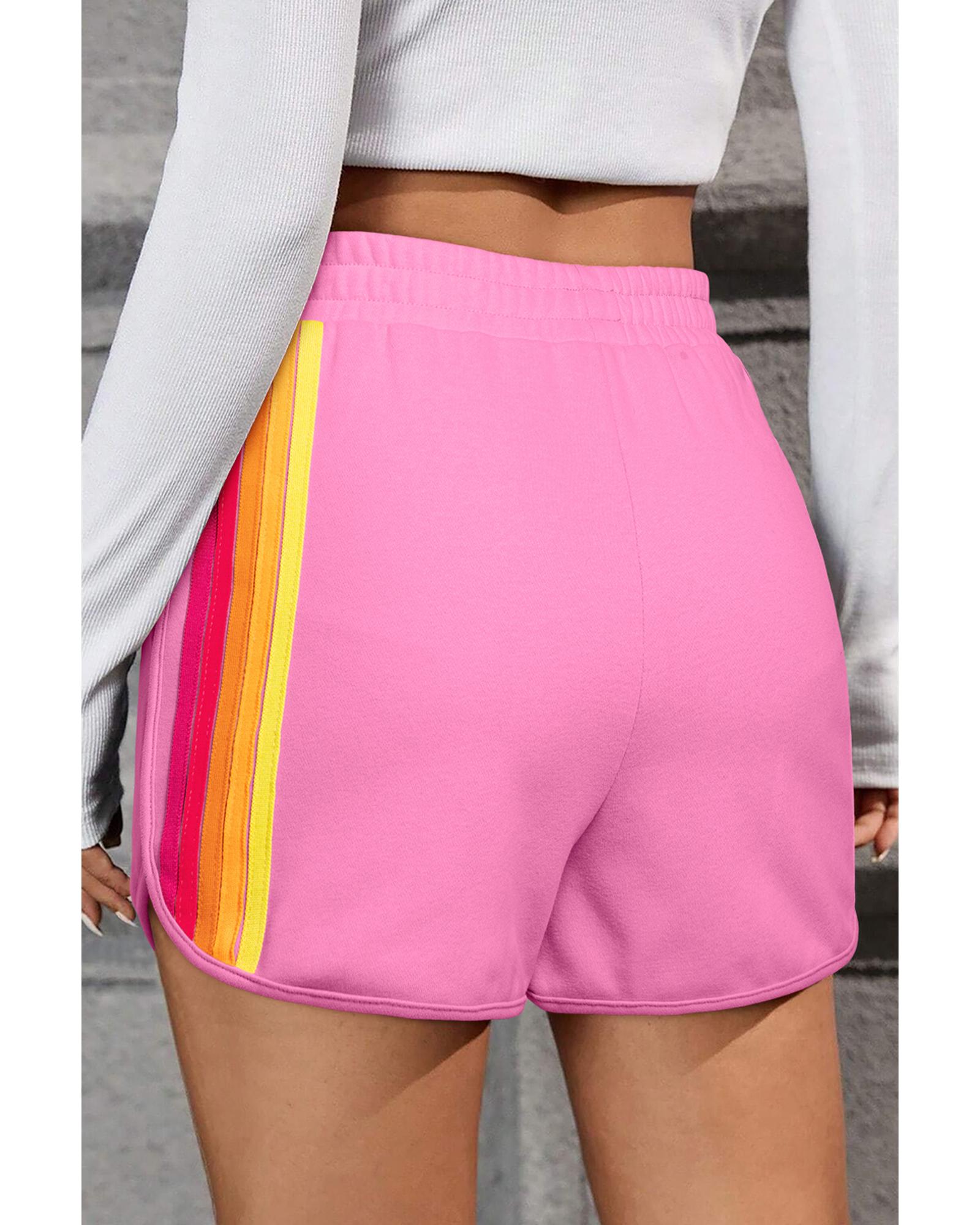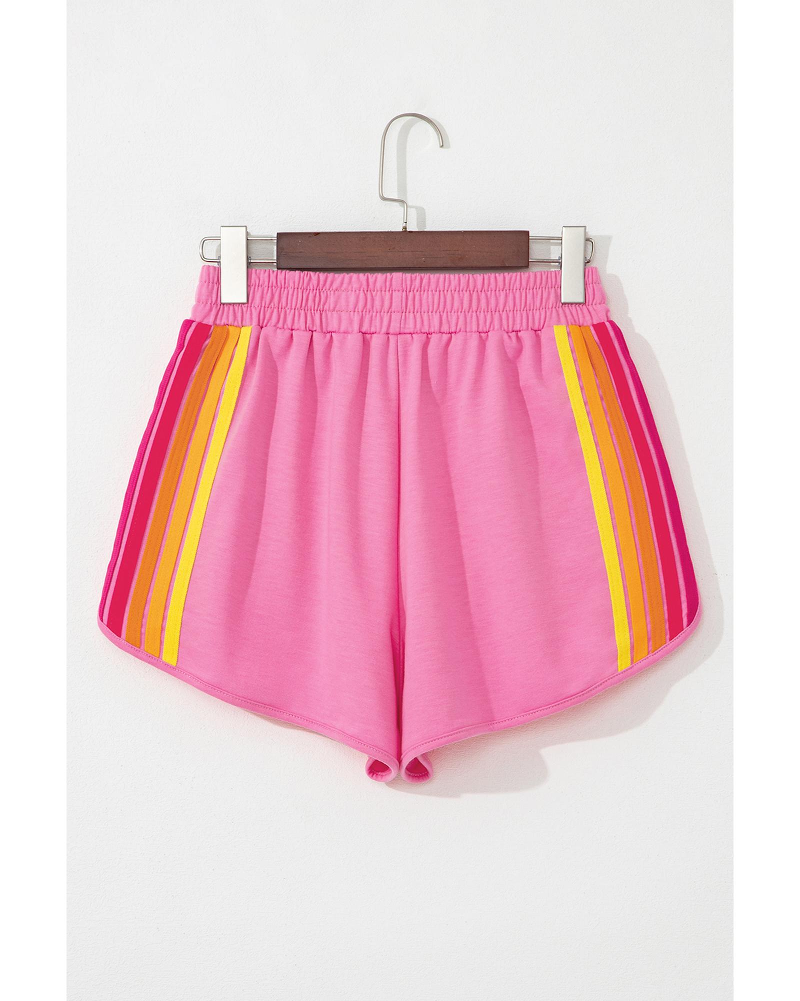 Bonbon Color Block Stripes Elastic High Waist Active Shorts – S