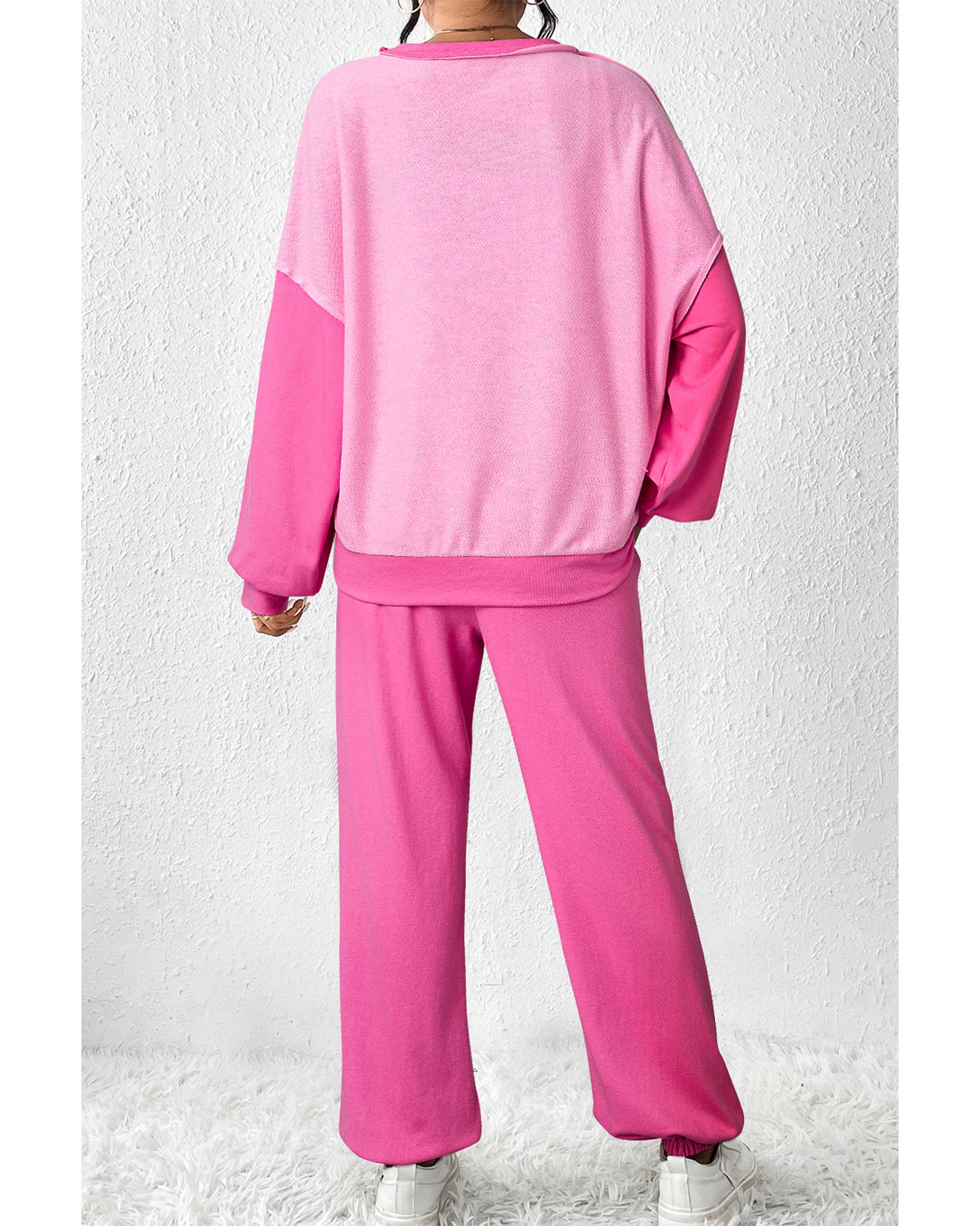 Bonbon Contrast Patchwork Pullover and Drawstring Joggers Set – XL