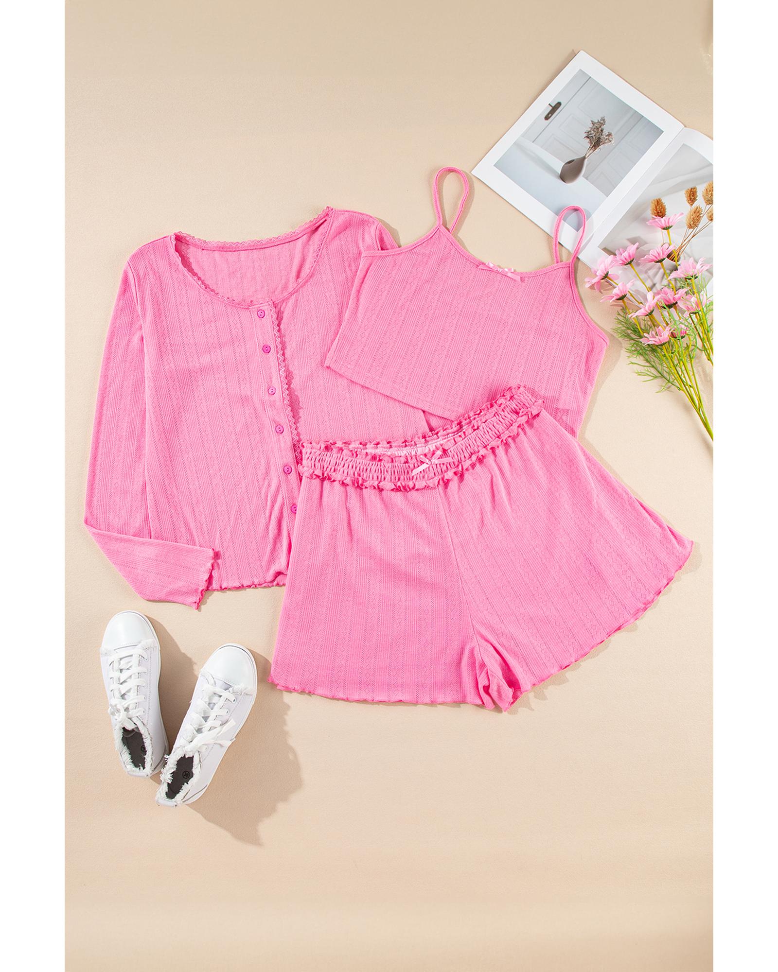 Bonbon Delicate Texture Cropped Cami Shorts and Cardigan 3pcs Lounge Set – XL