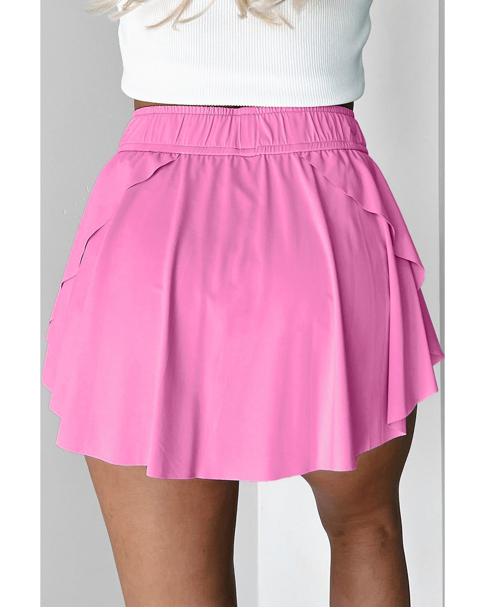 Bonbon Drawstring High Waist Lined Tennis Skorts – L
