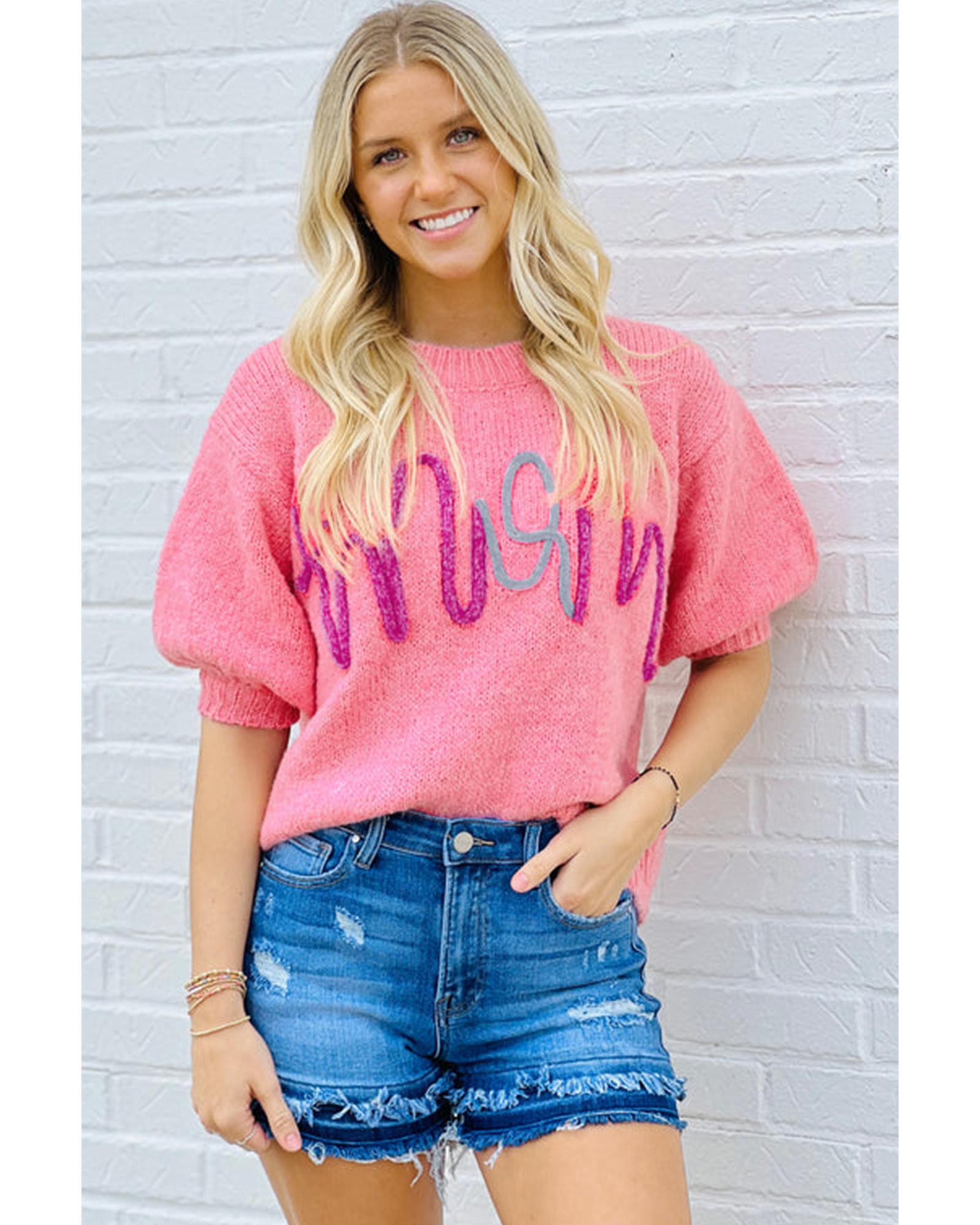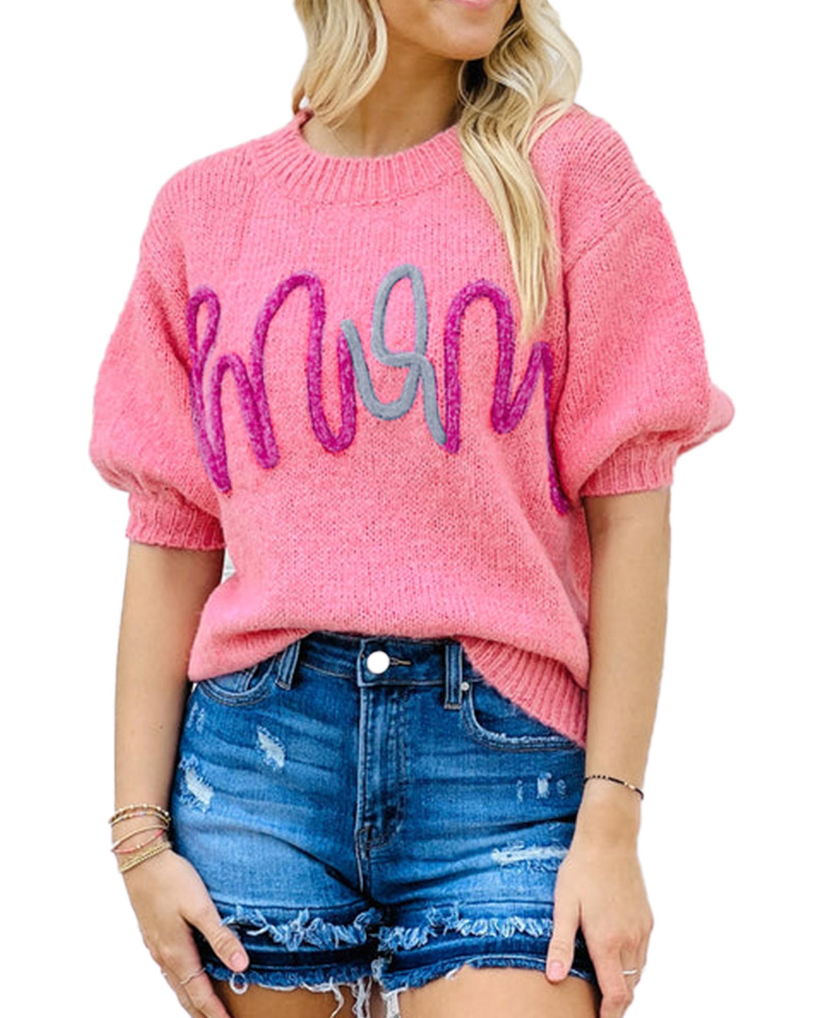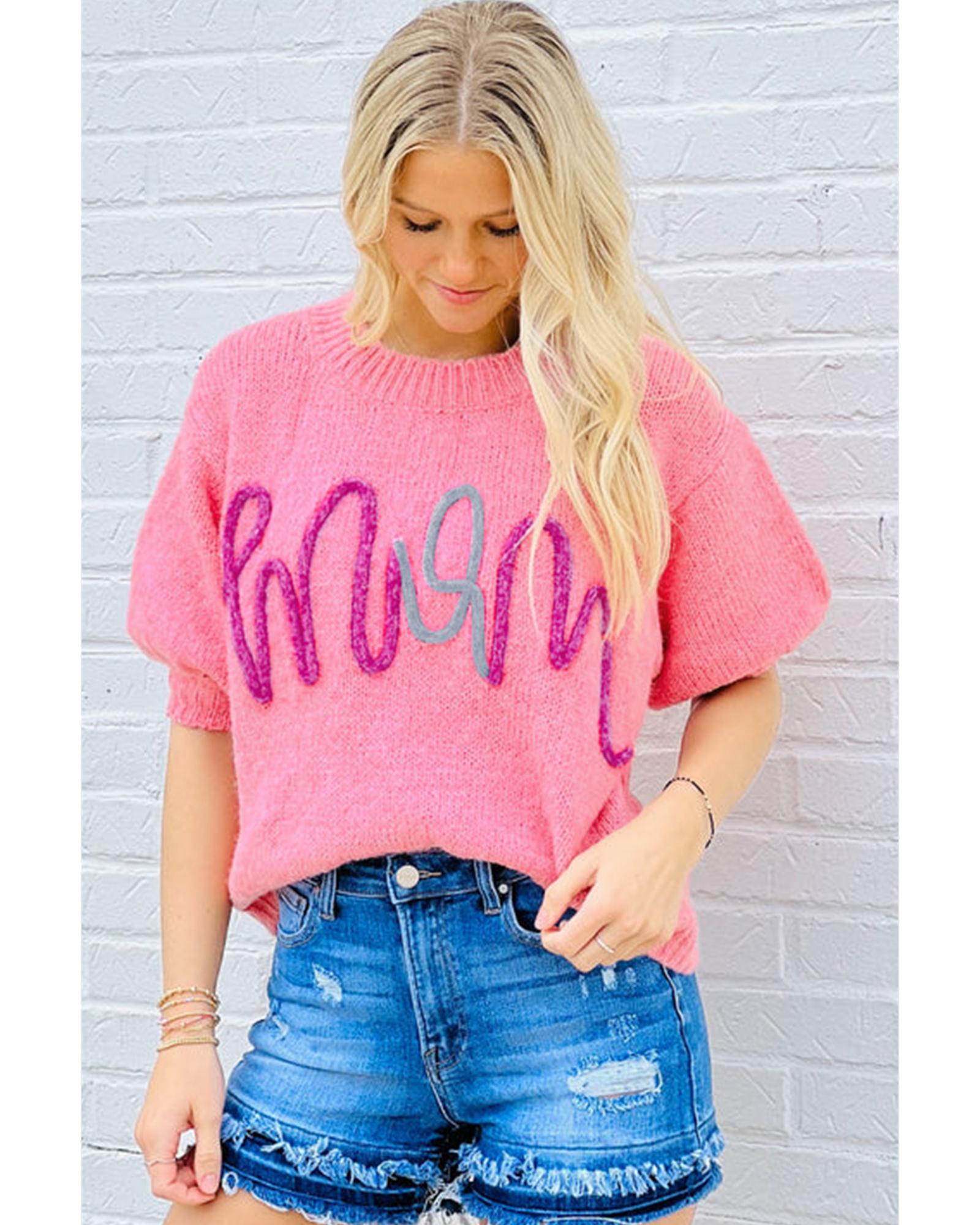 - Chic and stylish Bonbon Mom Tinsel Front Short Sleeve Sweater
