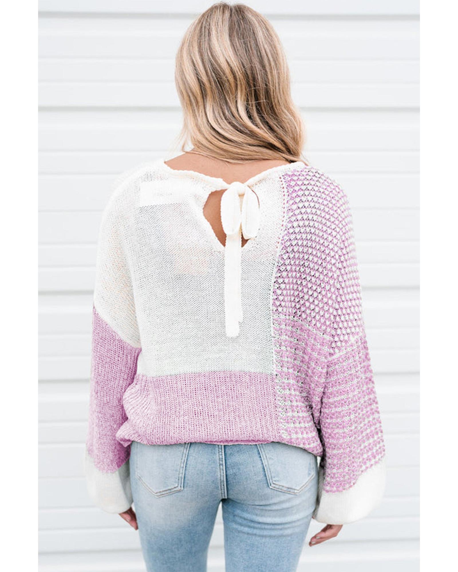 Bonbon Neutral Colorblock Tie Back Sweater – S