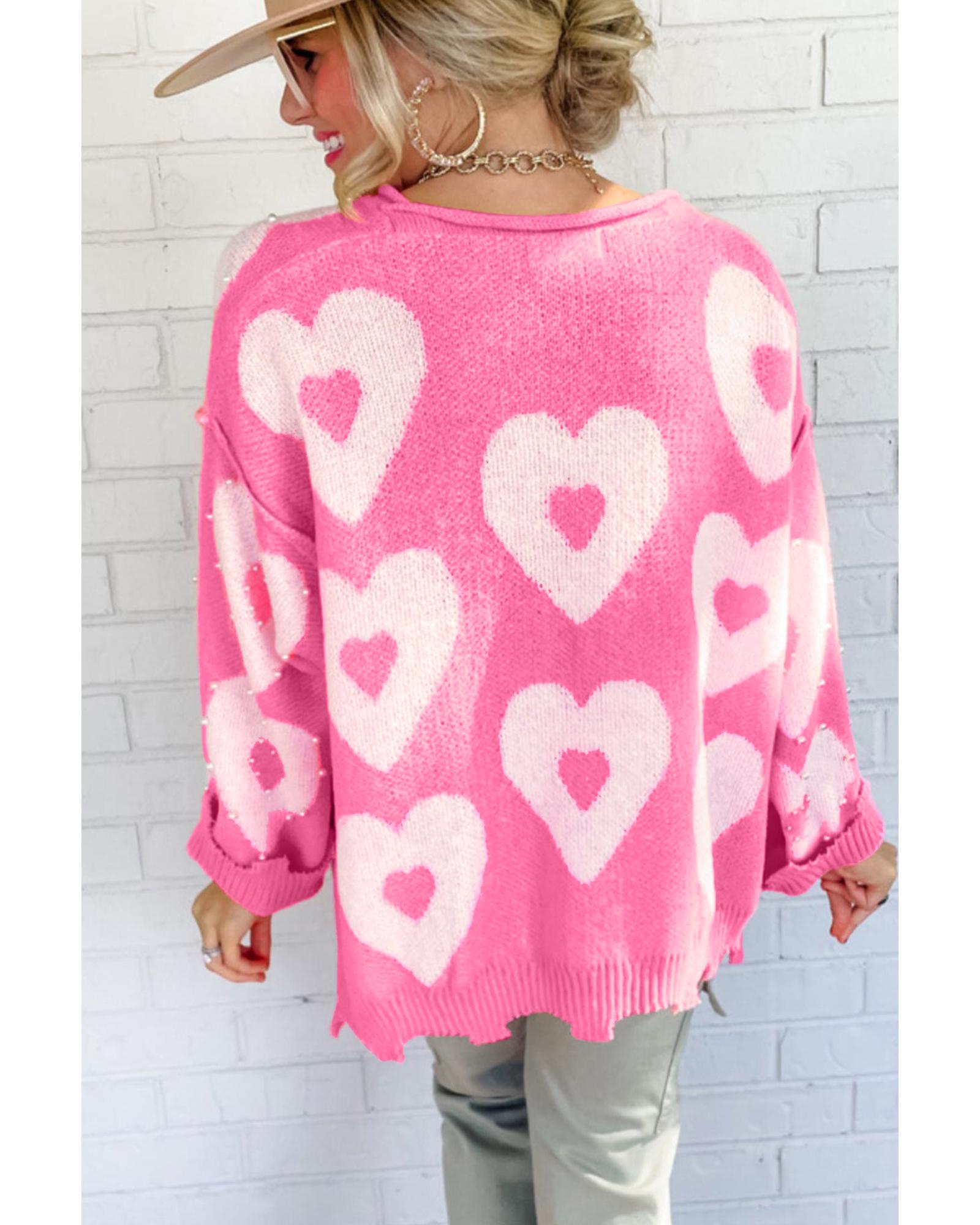 - Unique and cozy Bonbon Pearl Beaded Heart Drop Shoulder Sweater